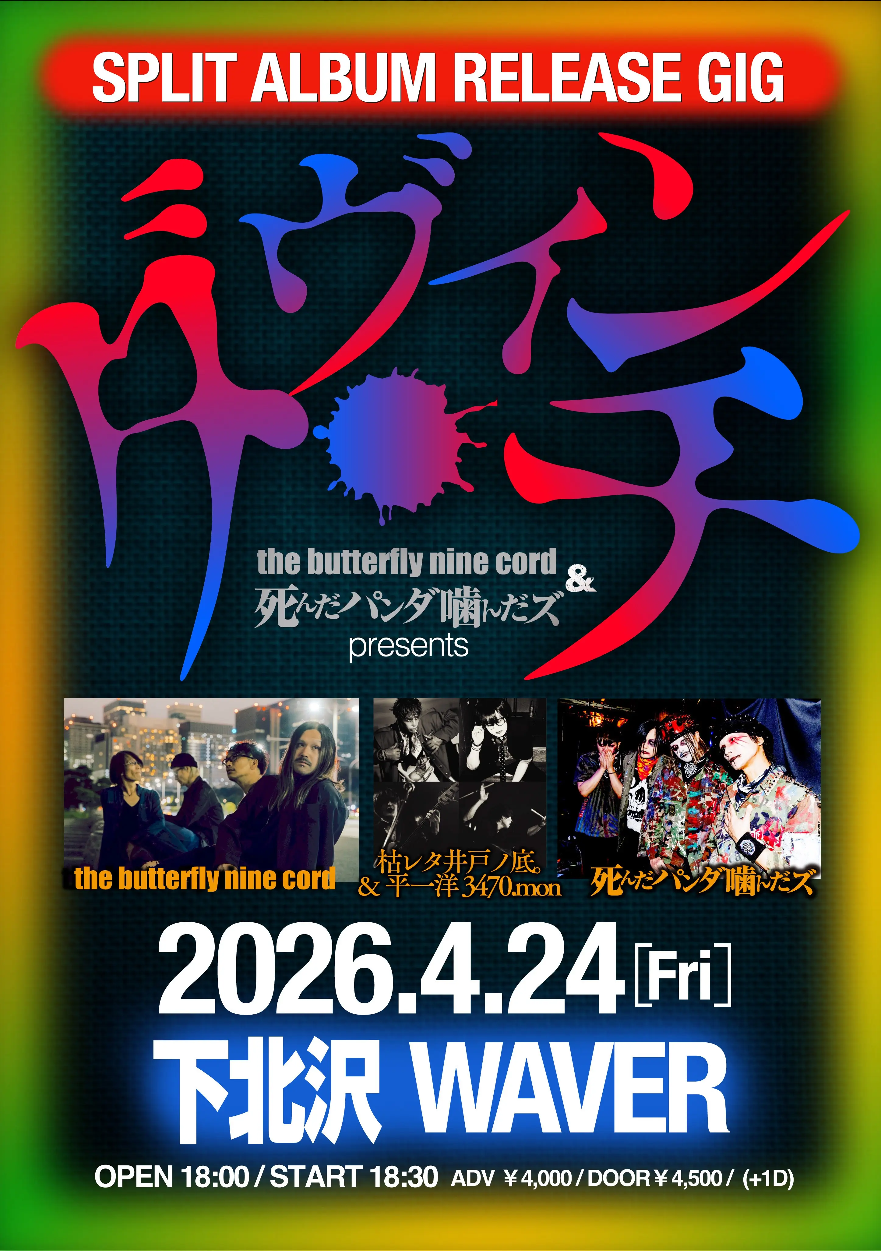 出演者 the butterfly nine cord / 死んだパンダ噛んだズ / 枯レタ井戸ノ底。&平一洋3470.mon