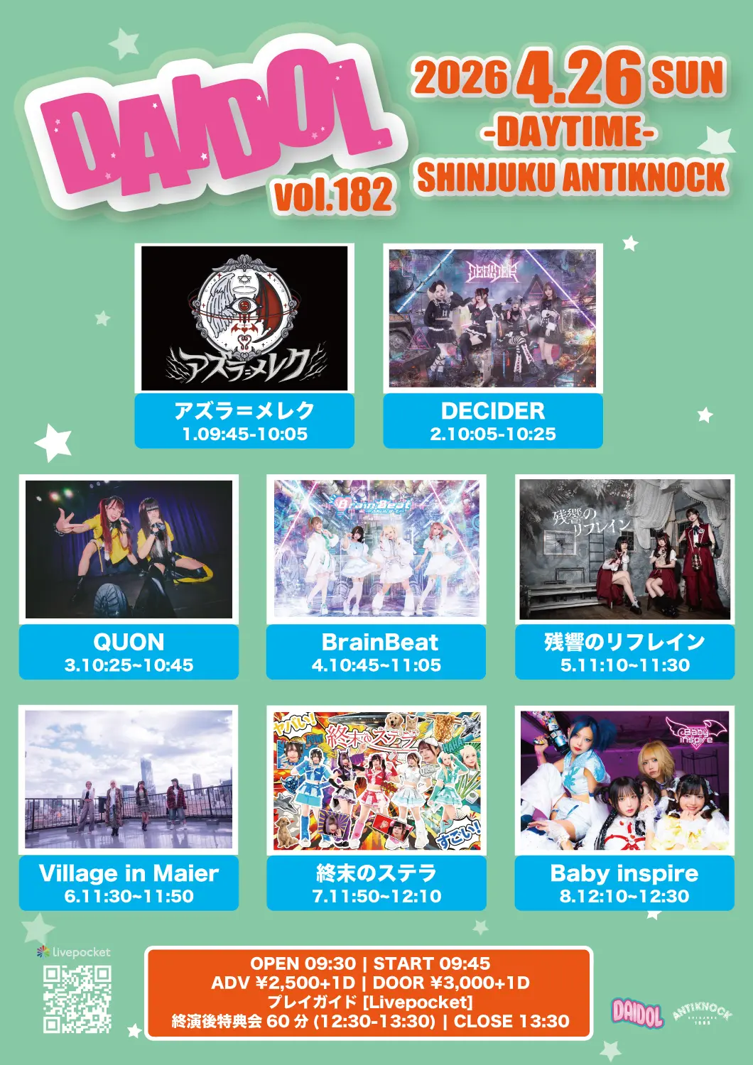 出演者 残響のリフレイン / Village in Maier / 終末のステラ / QUON / DECIDER / アズラ=メレク / Baby inspire / BrainBeat