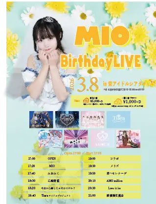 出演者 AMOmillion / Love it ice / 真田愛生 / 星野のあ / Tiaraアイドルプロジェクト / さおりん