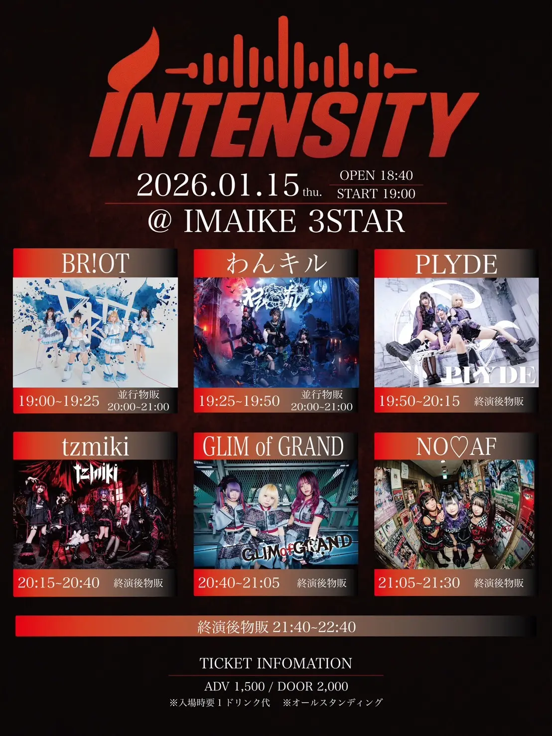 出演者 GLIM of GRAND / BR!OT / tzmiki / PLYDE / NO♡AF / わんキル