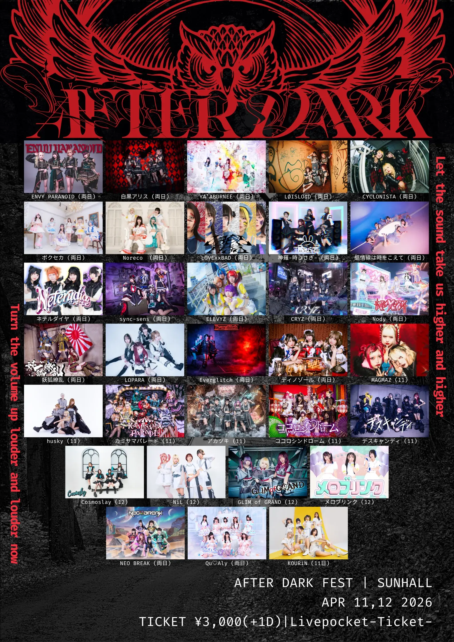 出演者 感情線は時をこえて / 白黒アリス / ネテルダイヤ / Everglitch / ELEVYZ / カミサマパレード / ココロシンドローム / CYCLONISTA / sync-sens / デスキャンディ / husky / 妖狐繚乱 / ENVY PARANOID / CRYZ / GLIMofGRAND / Cosmoslay / LΩPARA / NiL / メロブリンク / アカツキ / MAGMAZ / LOVExxBAD / LØISLOID / YA'ABURNEE / ボクセカ / Noreco / Nody / ディノゾール / 神薙-時うさぎ- / NEO BREAK / Qu♡Aly / KOURiN
