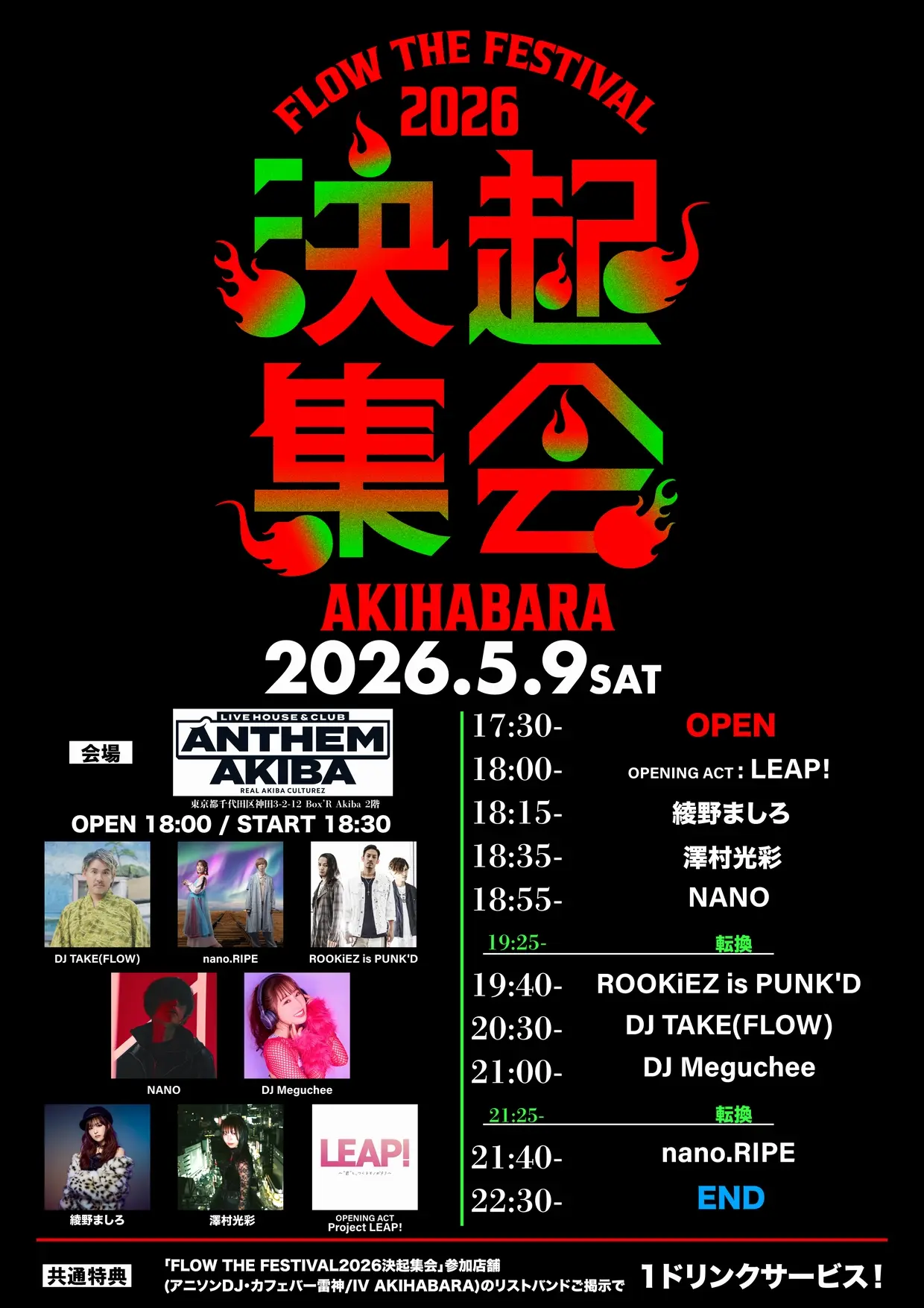 5/9(土)FLOW THE FESTIVAL 2026 ~決起集会・秋葉原~(サーキット第3会場)at 秋葉原ANTHEM AKIBA