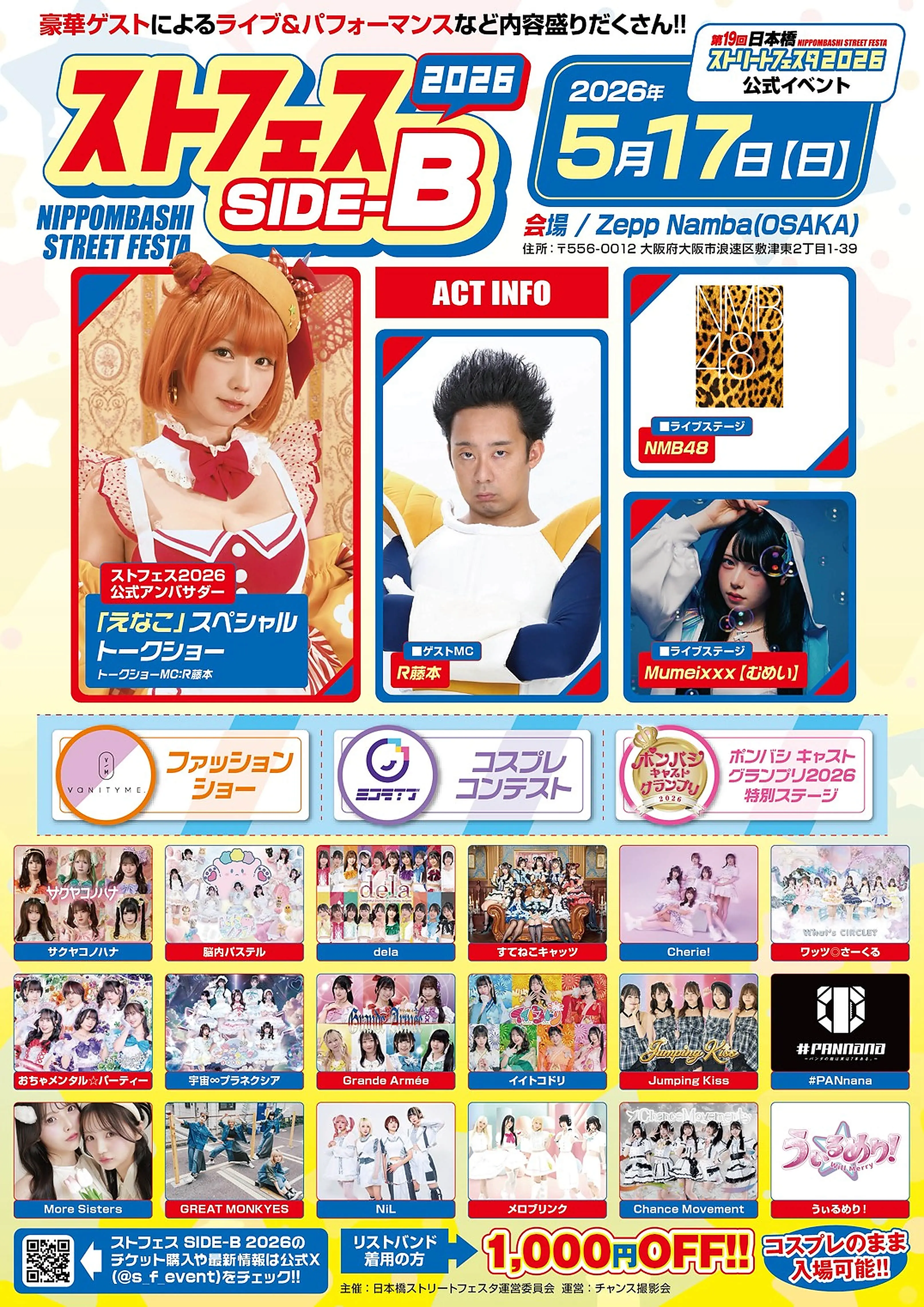 出演者 えなこ / R藤本 / NMB48 / Mumeixxx【むめい】 / サクヤコノハナ / 脳内パステル / おちゃメンタル☆パーティー / ワッツ◎さーくる / 宇宙∞プラネクシア / dela / Grande Armée / More Sisters / すてねこキャッツ / Jumping Kiss / メロブリンク / NiL / Chance Movement / #PANnana / Cherie! / GREAT MONKEYS / うぃるめり! / and more...