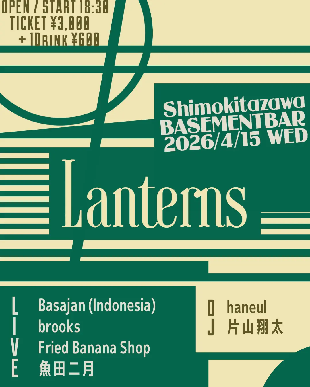 出演者 Basajan / Fried Banana Shop / brooks / 魚田二月 / haneul