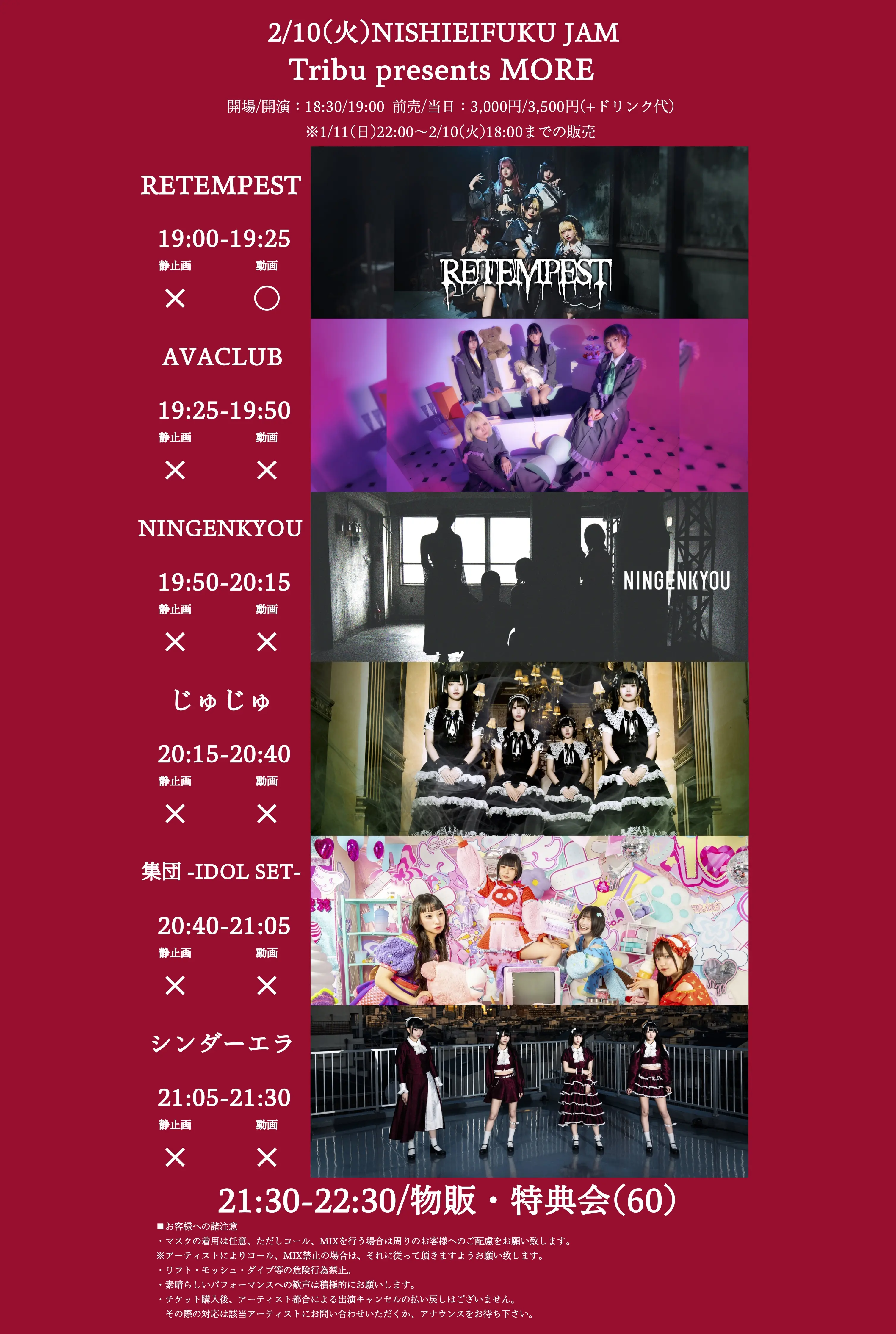 出演者 NINGENKYOU / RETEMPEST / AVACLUB / じゅじゅ / シンダーエラ / 集団 -IDOL SET-