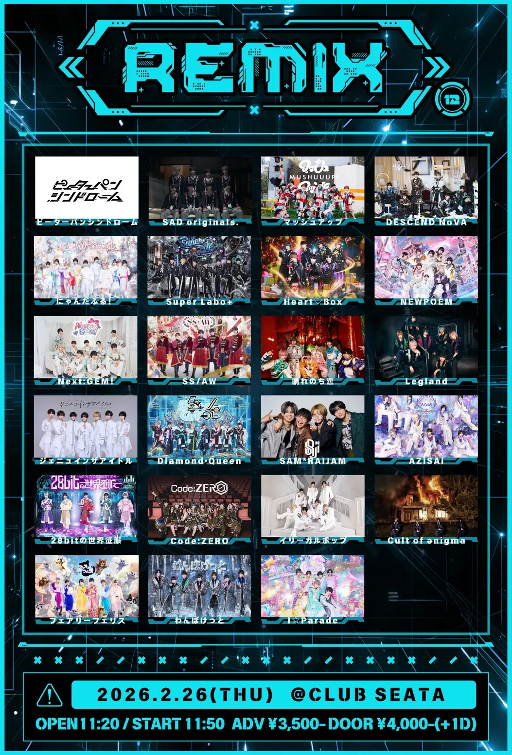出演者 マッシュアップ / H@ng_oveR / WAAARZ / 28bitの世界征服 / プレアデス / Ab7Prince / NEWPOEM / STRAY DOGs / Se2aN⤵︎ ︎ / Once More / Zolpidem / Code:ZERO / SS/AW / にゃんだふる! / ユメカウツツカ / Heart♡Box / Diamond Queen / Super Labo+ / 髑ドク / サクラサク / レミニセンスパレード / RE:MODE / ノクトクライス / Next:GEM! / バトラブ! / UN9UE / Freak Out X