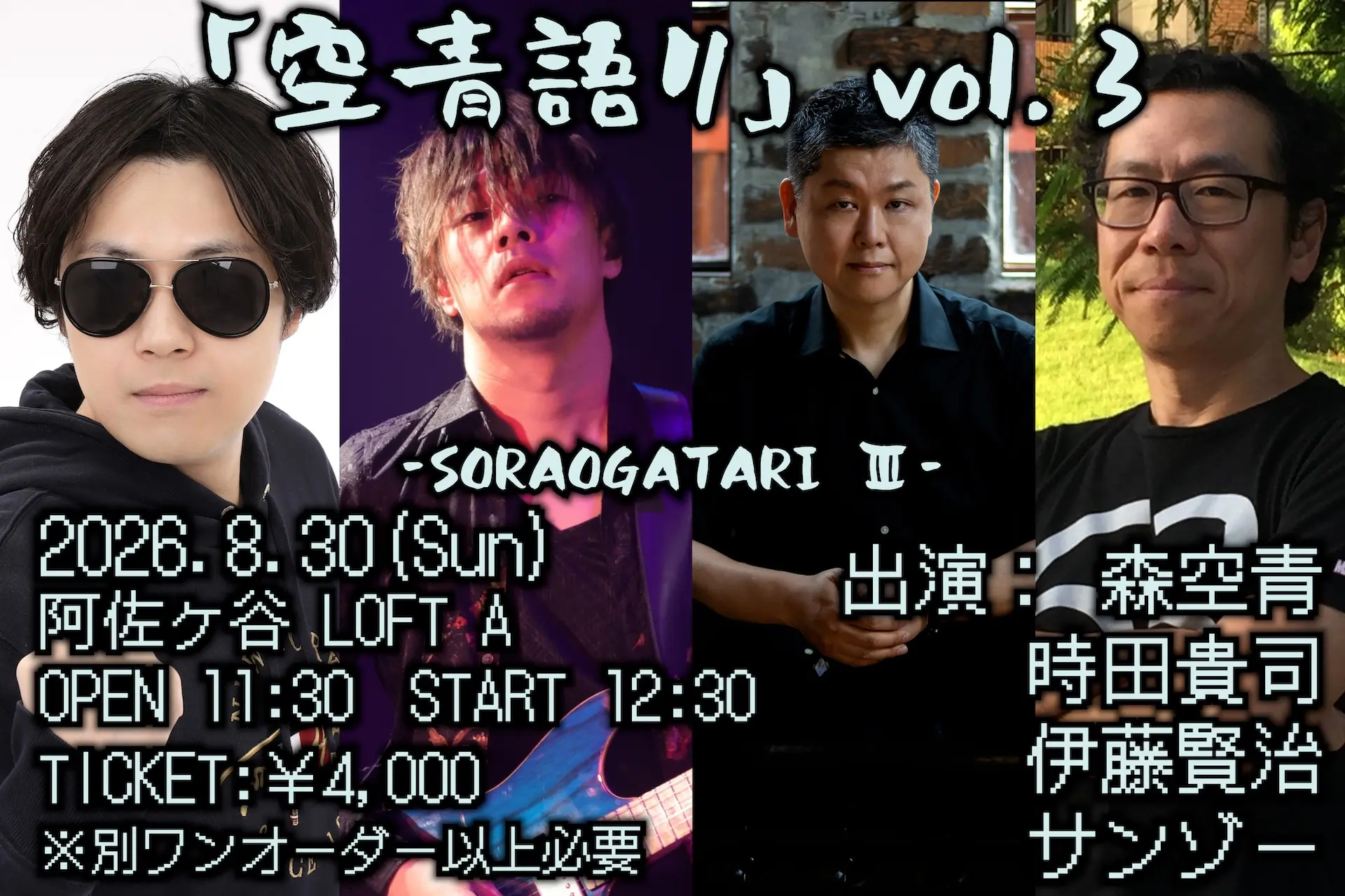 出演者 森空青 / 時田貴司 / 伊藤賢治 / サンゾー
