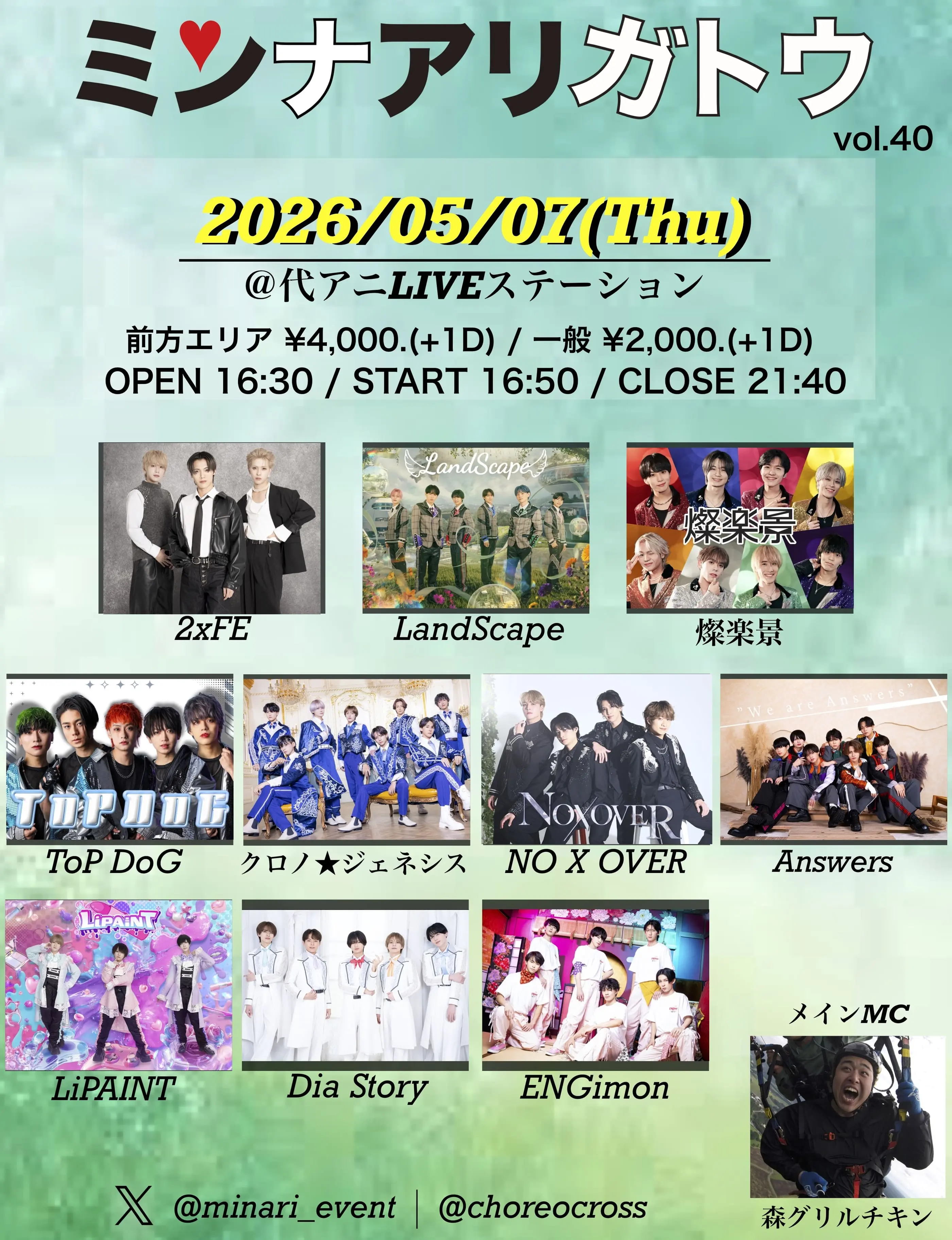 出演者 2×FE / LandScape / Dia Story / 燦楽景 / クロノ★ジェネシス / ToP DoG / Answers / LiPAINT / NO X OVER / ENGimon / 森グリルチキン