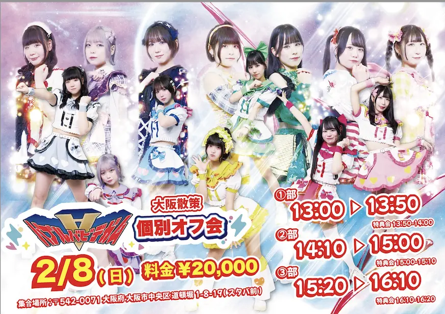 出演者 ワンダーウィード天 / 花いろは / アルテミスの翼 / 仮面女子 / AIBECK / LEIWAN / KAZALIN / EMPATHY / INSPIRE / ワガママなラストノート / alma / airrow / シークレットシャノワール / おちゃメンタル☆パーティー / Red Raddiance / 可愛いって言わないと呪う! / リルリボン / One Last Bloom / Poppin' Parade / セカモノ / Milky*Sphene / スポポポポニー / ばたんキュン / NEO BREAK / チキータ / Untitled / メリーパレード
