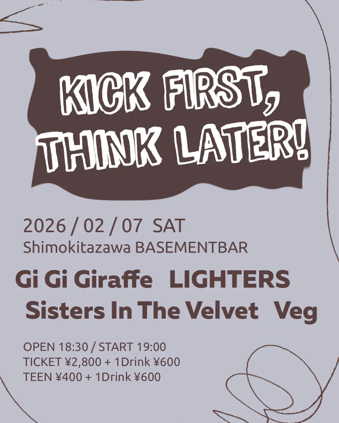 出演者 Gi Gi Giraffe / Sisters In The Velvet / Veg / LIGHTERS