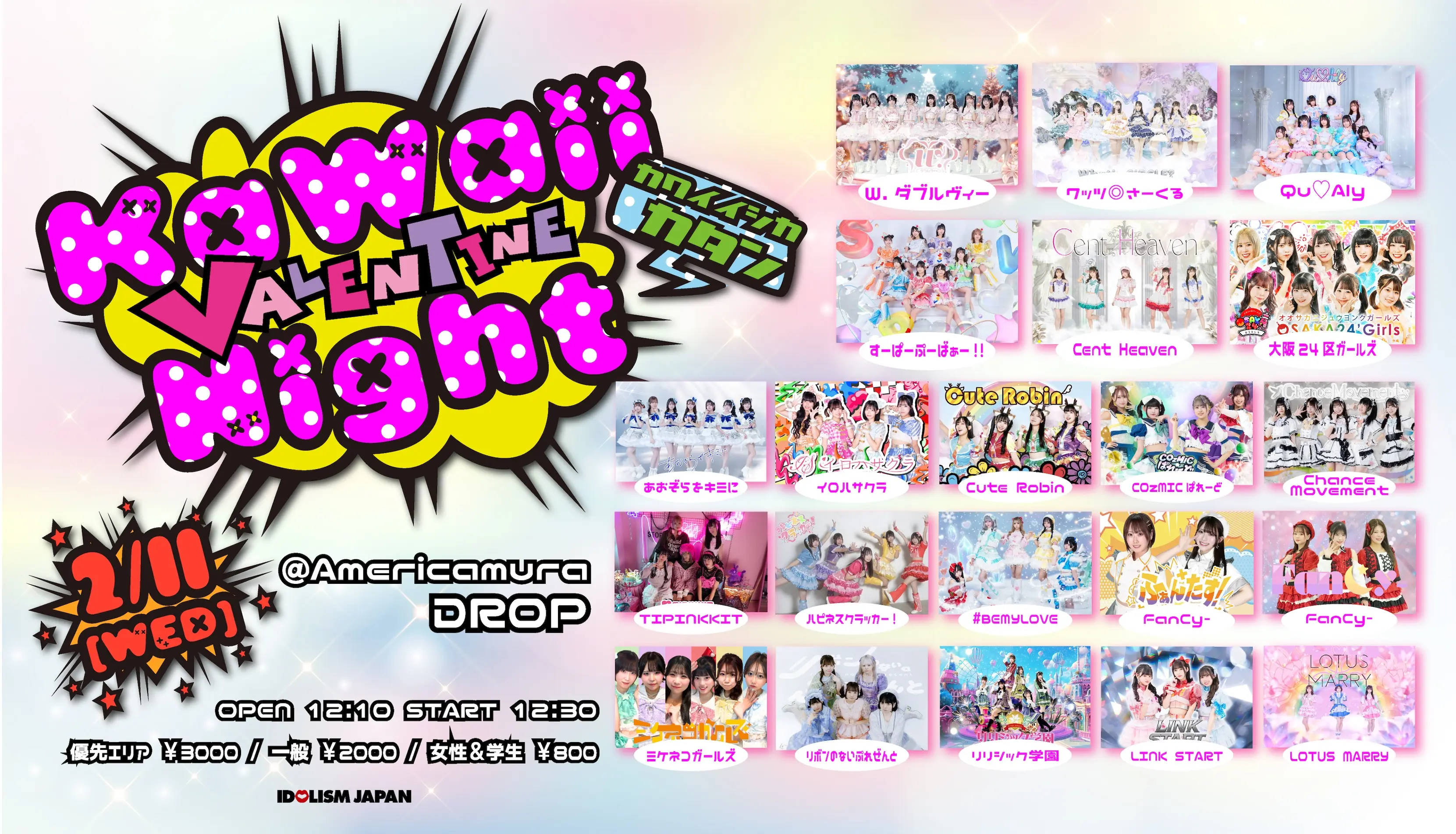 出演者 リリシック学園 / イロハサクラ / ミケネコガールズ / CuteRobin / Cent Heaven / FanCy- / #BEMYLOVE / Chance Movement / あおぞらをキミに / リボンのないぷれぜんと / ふぁんたす! / Qu♡Aly / COzMICぱれーど / LOTUS MARRY / ハピネスクラッカー! / ワッツ@さーくる / TIPINKIT / W.ダブルヴィー / すーぱーぷーばぁー!! / 大阪24区ガールズ / link start