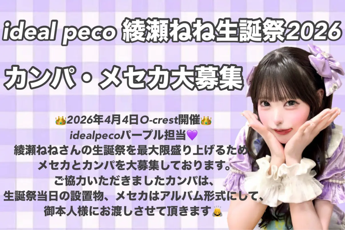 ideal peco 綾瀬ねね生誕祭2026オンラインカンパ申込フォーム