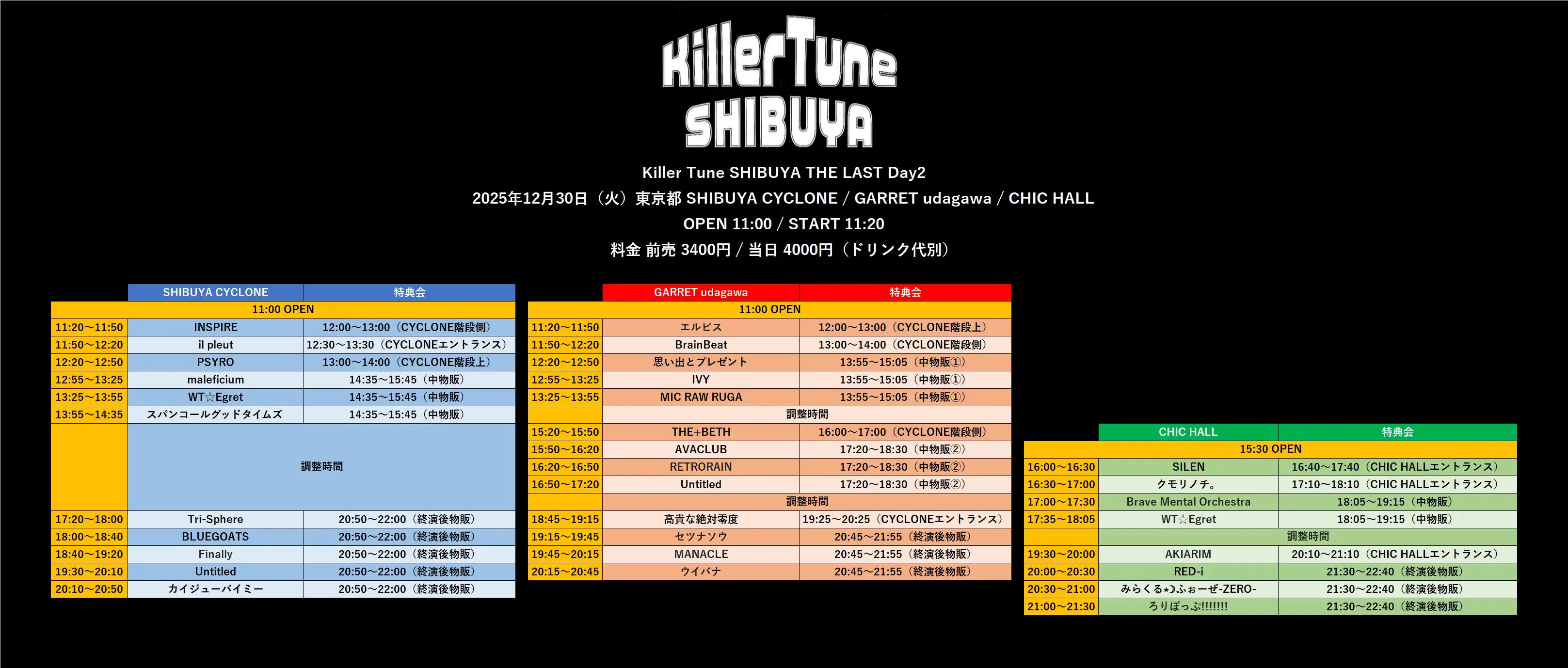 会場 SHIBUYA CYCLONE / GARRET udagawa / CHIC HALL(東京都)