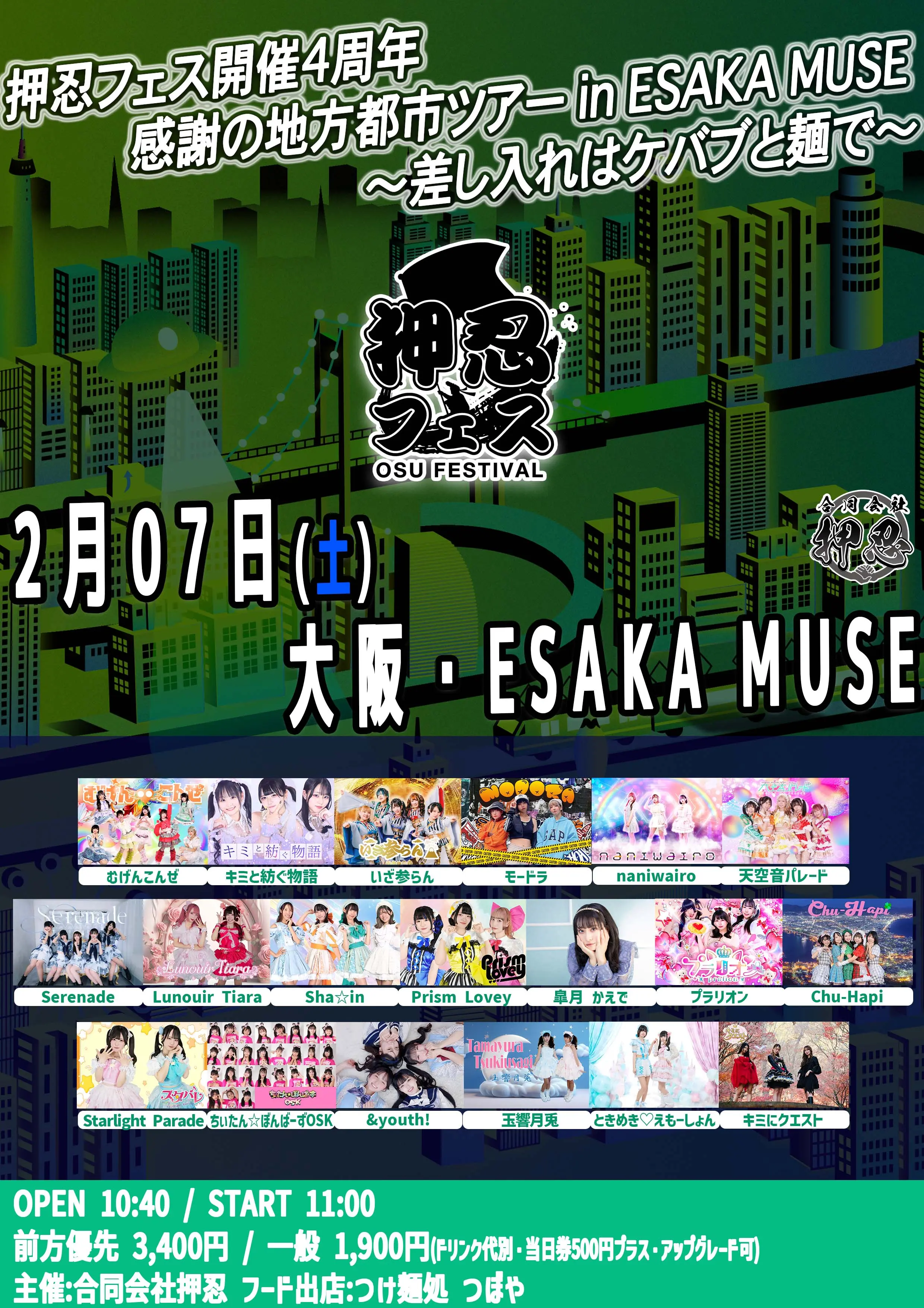 「押忍フェス開催4周年 感謝の地方都市ツアー in ESAKA MUSE〜差し入れはケバブと麺で〜」