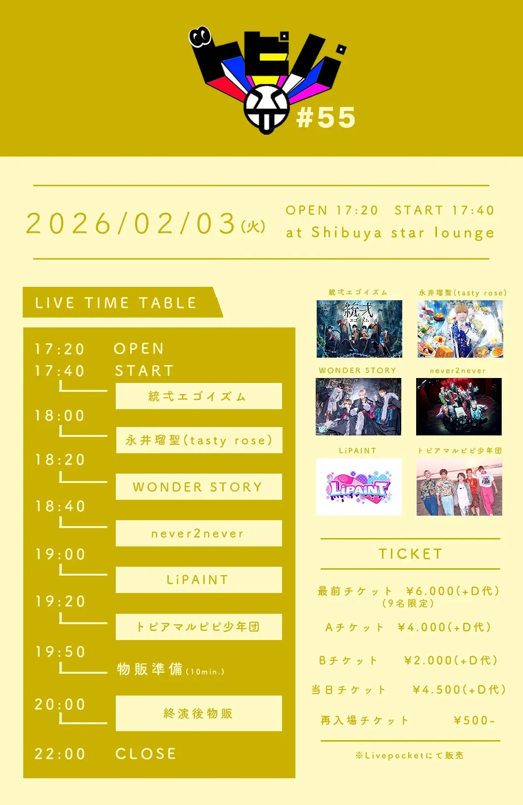 出演者 トピアマルピピ少年団 / never2never / LiPAINT / tasty rose / WONDER STORY / 統弌エゴイズム