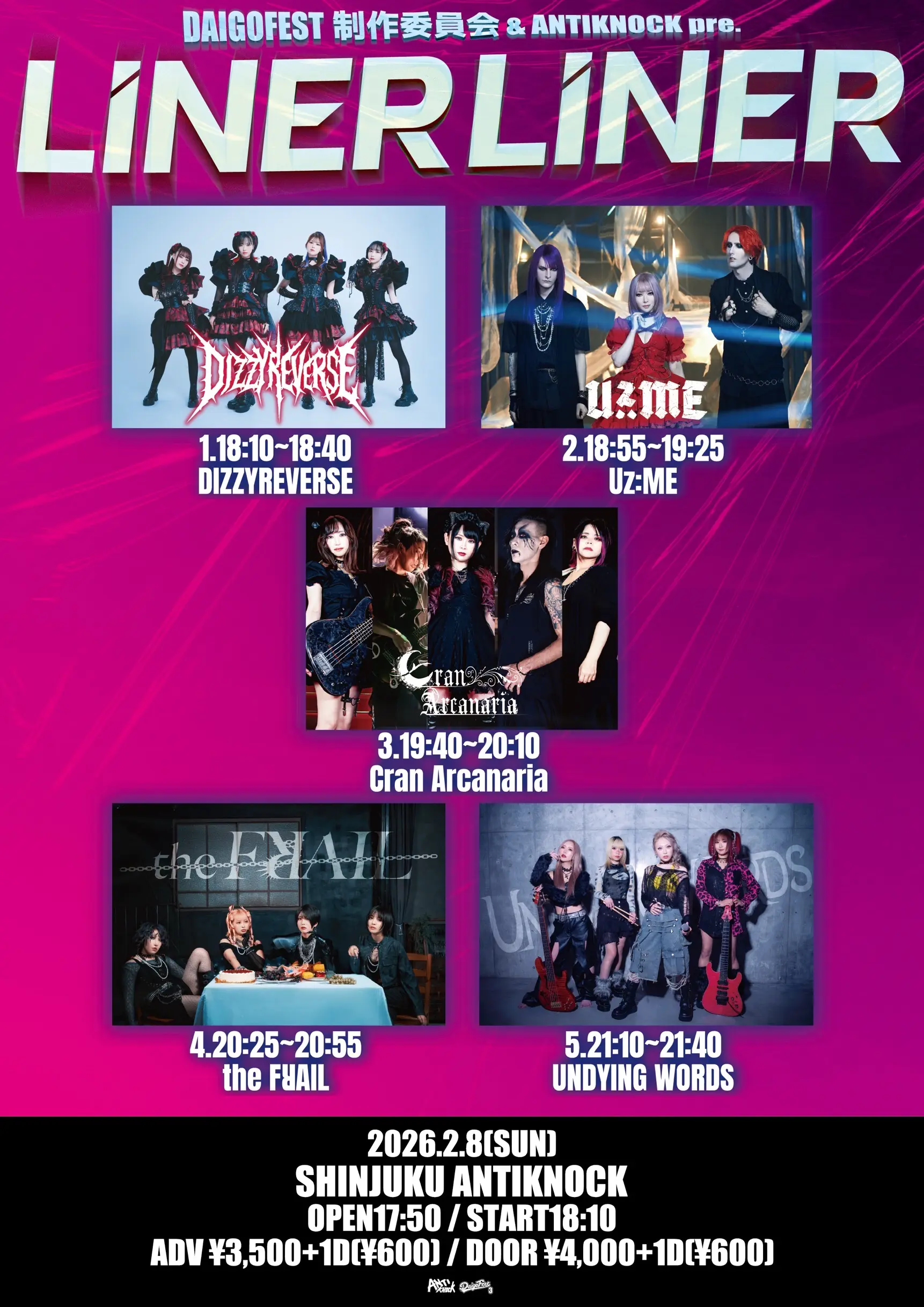 出演者 UNDYING WORDS / the FꓤAIL / DIZZYREVERSE / Cran Arcanaria / Uz:ME
