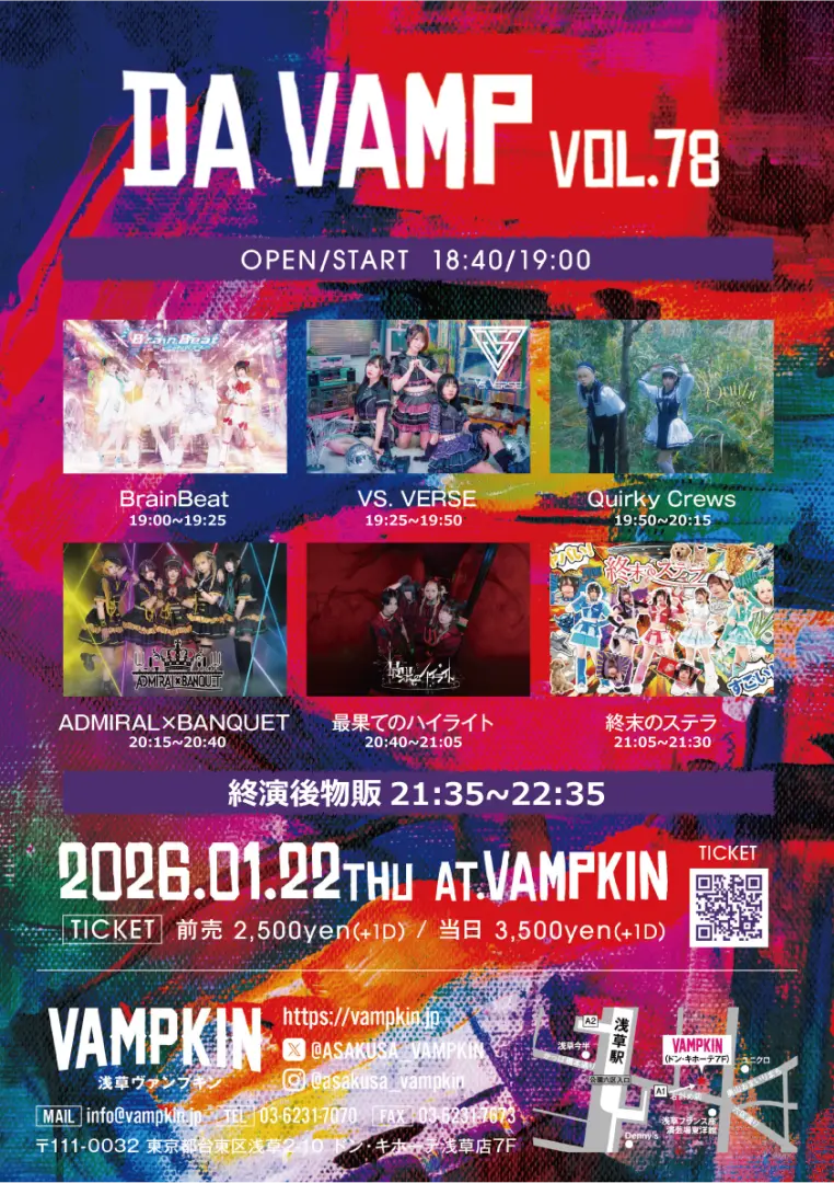 出演者 BrainBeat / VS. VERSE / Quirky Crews / ADMIRAL×BANQUET / 最果てのハイライト / 終末のステラ