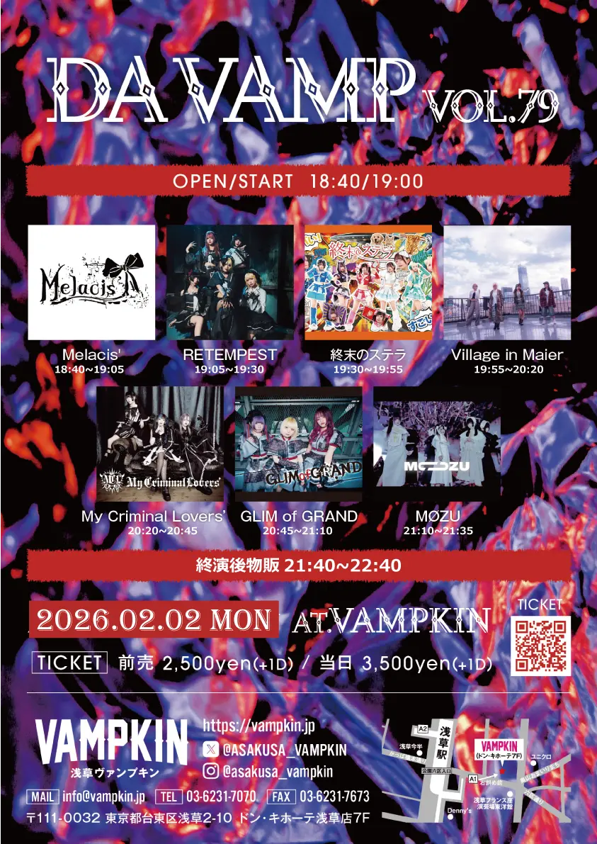 出演者 Melacis' / RETEMPEST / 終末のステラ / Village in Maier / My Criminal Lovers’ / GLIM of GRAND / MØZU