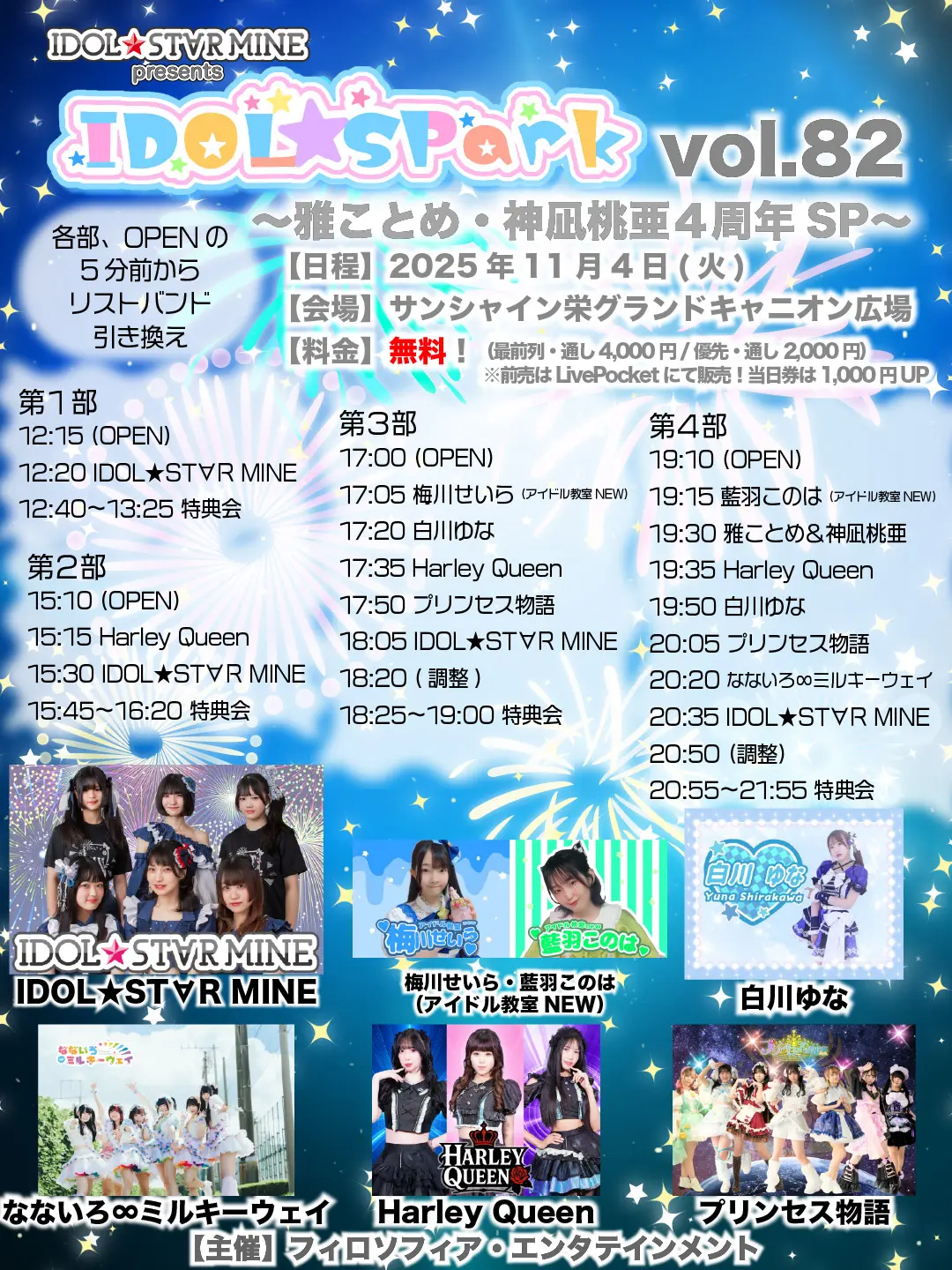出演者 IDOL★ST∀R MINE / アイドル教室NEW / なないろ∞ミルキーウェイ / プリンセス物語 / Harley Queen / 白川ゆな