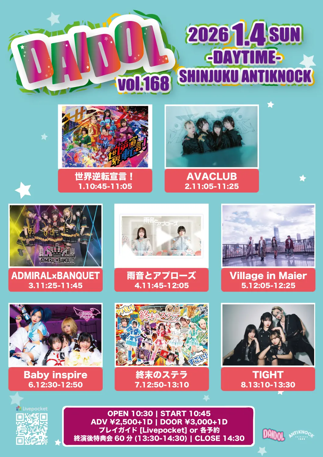 出演者 TIGHT / 世界逆転宣言! / 終末のステラ / 雨音とアプローズ / Village in Maier / Baby inspire / ADMIRAL×BANQUET / AVACLUB