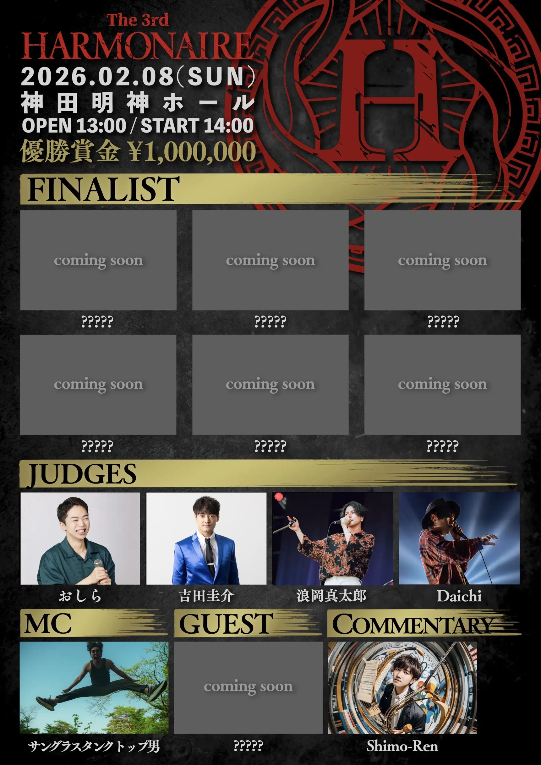 出演者 大橋ヒカル / 三代目レッカザン / オフィシャルアンバサダー / 増川洋一 / テラスセカイ / 山上暁之新 / Callison / アントニオ小猪木 / 立川志ら門