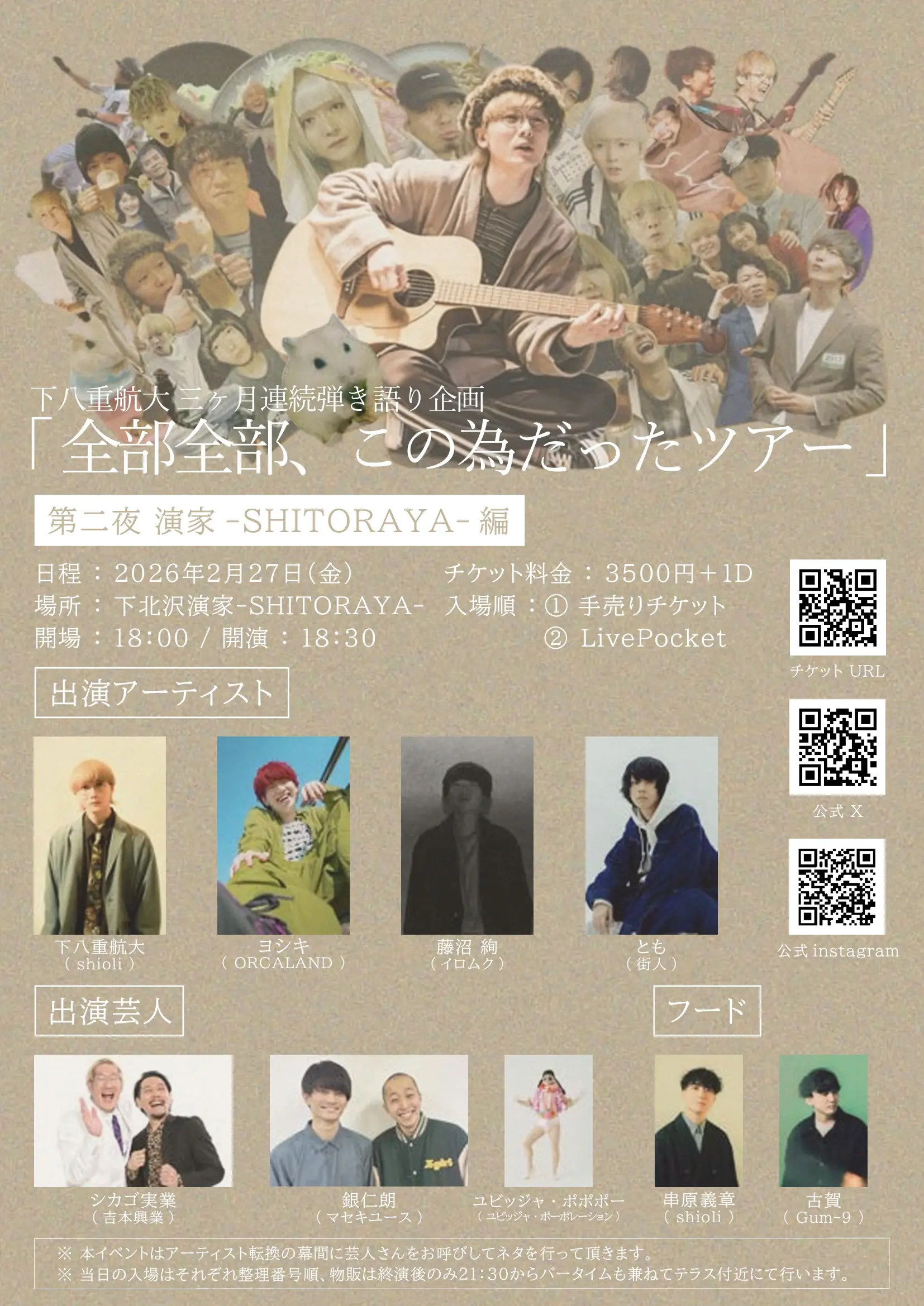 下八重航大 三ヶ月連続弾き語り企画「全部全部、この為だったツアー」第二夜 演家-SHITORAYA-編