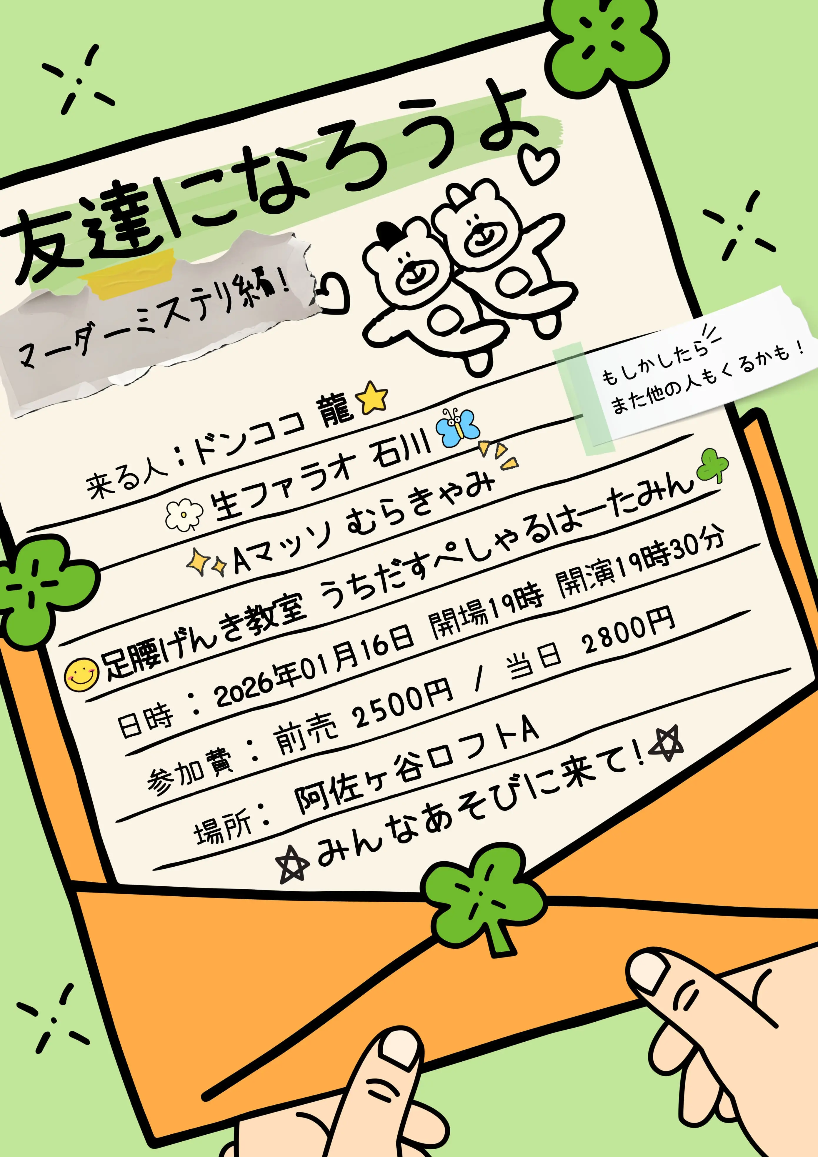 出演者 ドンココ 龍 / Aマッソ むらきゃみ / 生ファラオ 石川 / 足腰げんき教室 うちだすぺしゃるはーたみん / 柿沼