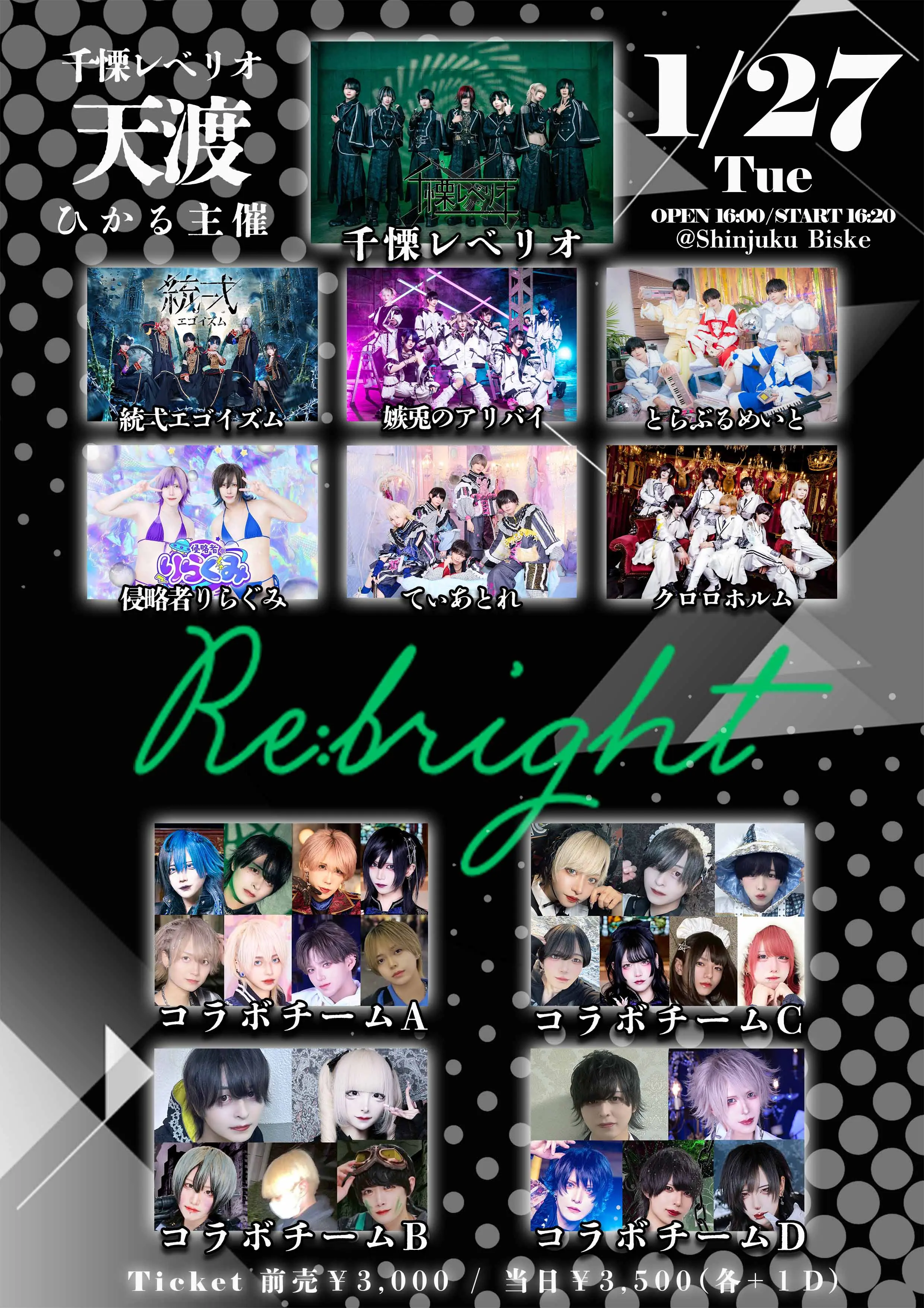 出演者 千慄レベリオ / 嫉兎のアリバイ / クロロホルム / 統弌エゴイズム / 侵略者りらぐみ / とらぶるめいと / てぃあとれ