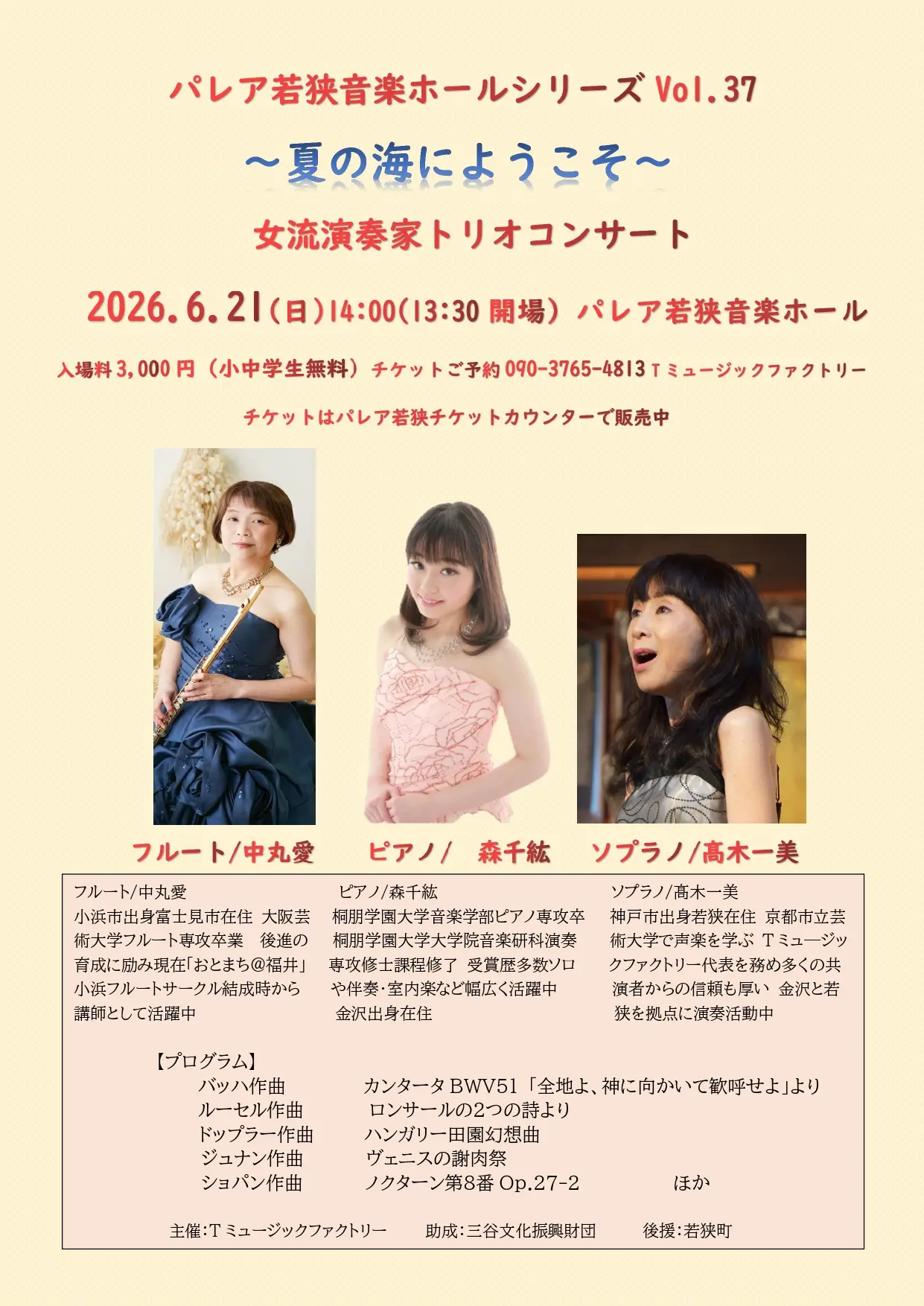 出演者 フルート中丸愛、ソプラノ高木一美、ピアノ森千紘