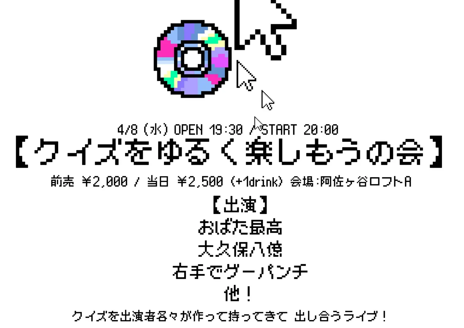 出演者 おたきあげ / るなち / サラ / おにぎり / Tee / わに / Netaro / 聖寿莉 / Daro