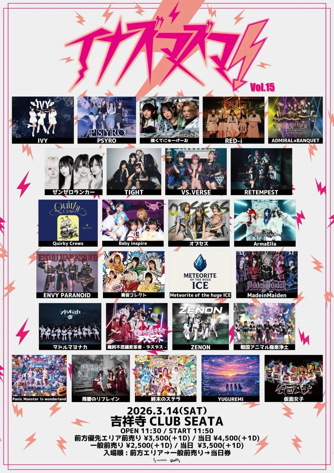 出演者 ADMIRAL×BANQUET / ArmaElla / Baby inspire / ENVY PARANOID / IVY / MadeinMaiden / Meteorite of the huge ICE / Panic Monster !n wonderland / PSYRO / Quirky Crews / RED-i / RETEMPEST / TIGHT / VS.VERSE / YUGUREMI / ZENON / オブセス / ゼンゼロランカー / ヲドルマヨナカ / 仮面女子 / 強くてにゅ〜げ〜む / 残響のリフレイン / 終末のステラ / 戦国アニマル極楽浄土 / 奏音コレクト / 魔訶不思議変革者-デスデス-
