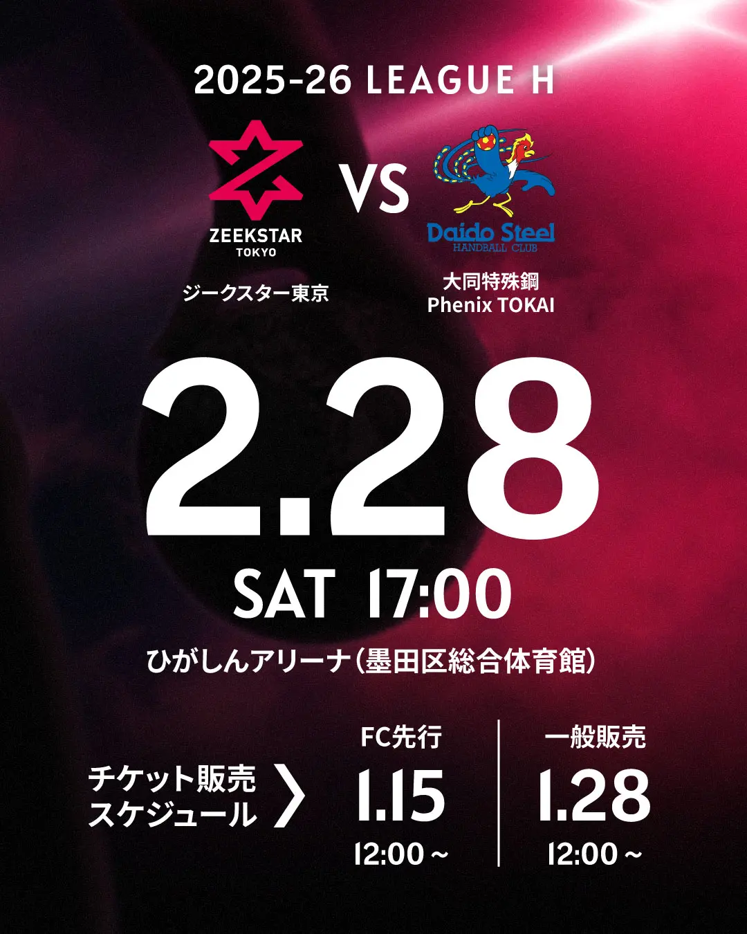 2/28(土) 2025-26 LEAGUE H ジークスター東京 vs 大同特殊鋼 Phenix TOKAI