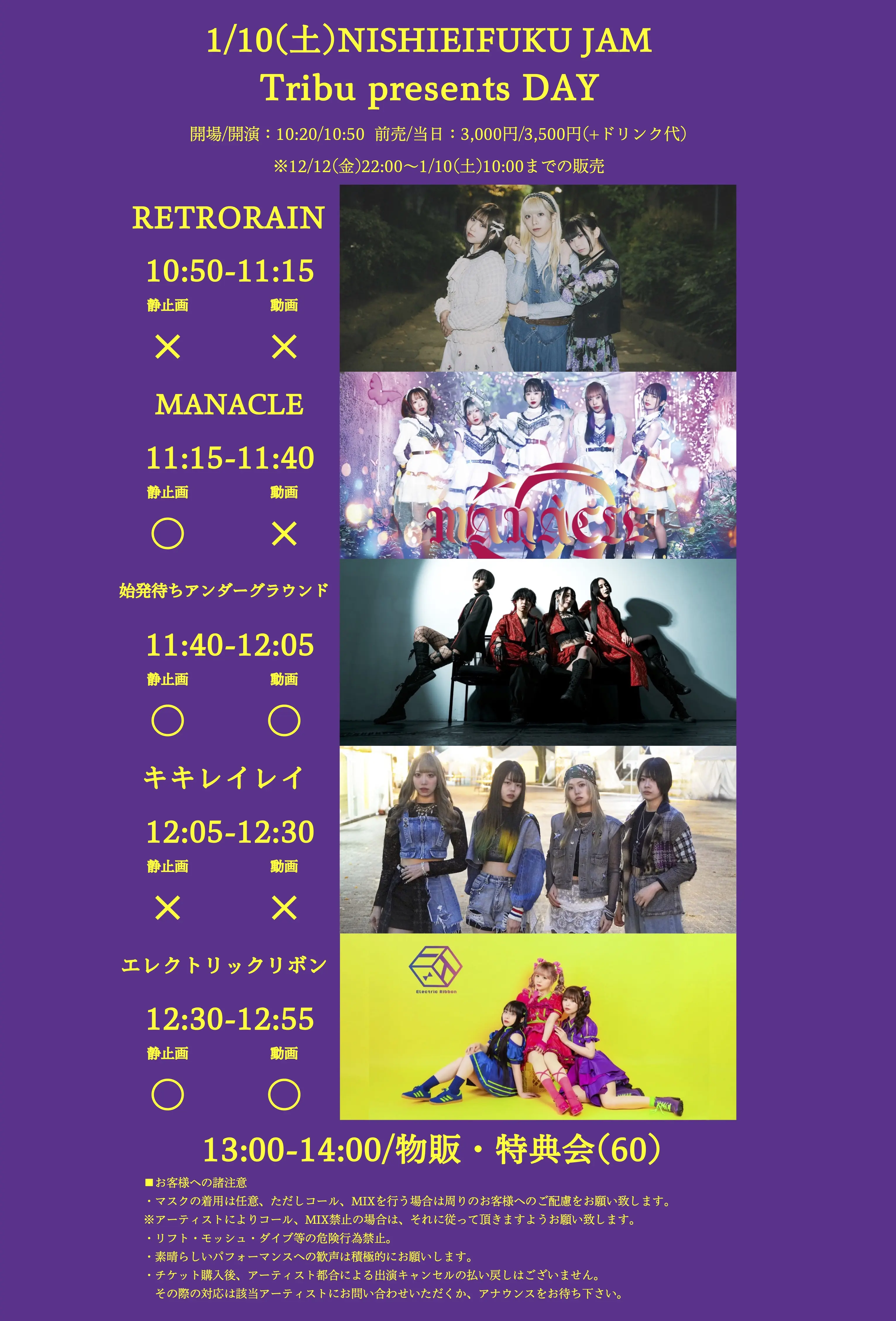 出演者 RETRORAIN / キキレイレイ / MANACLE / 始発待ちアンダーグラウンド / エレクトリックリボン