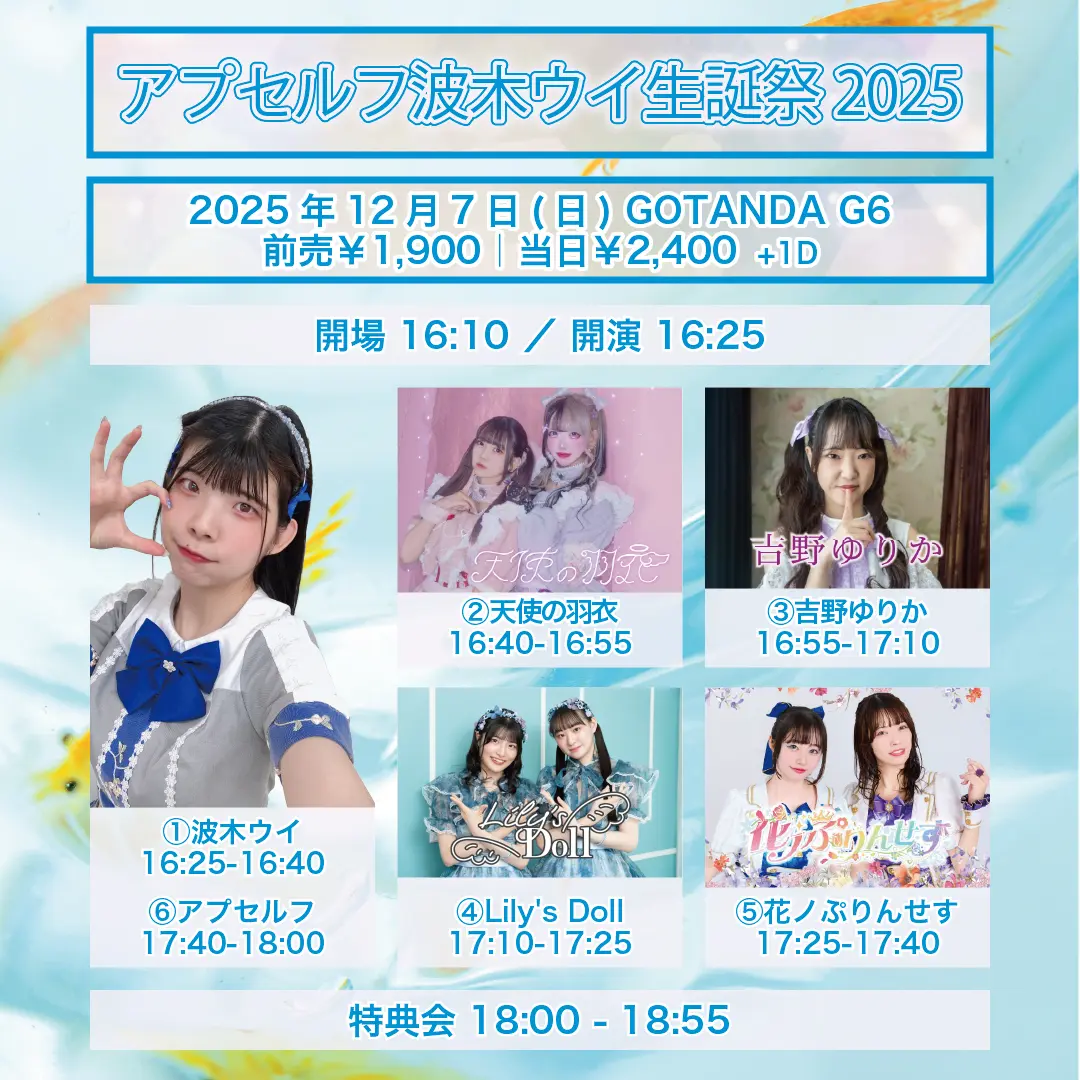 出演者 吉野ゆりか / 天使の羽衣 / アプセルフ / 波木ウイ / Lily's Doll / 花ノぷりんせす