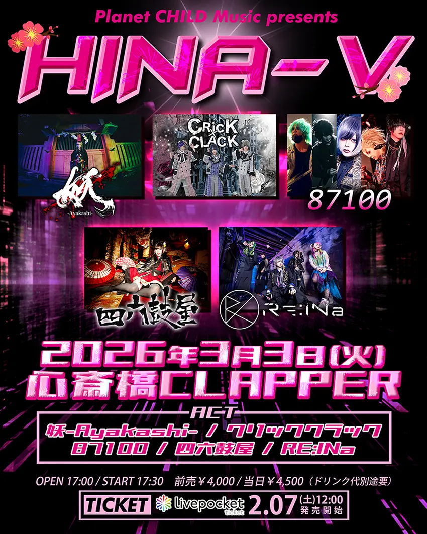出演者 妖-Ayakashi- / クリッククラック / 四六鼓屋 / RE:lNa / 87100