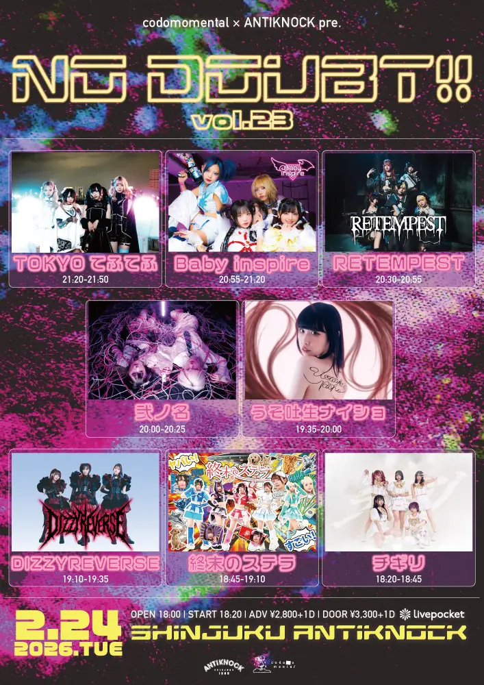 出演者 うそ吐生ナイショ / TOKYOてふてふ / 弐ノ名 / 終末のステラ / Baby inspire / RETEMPEST / DIZZYREVERSE / チギリ