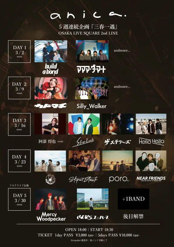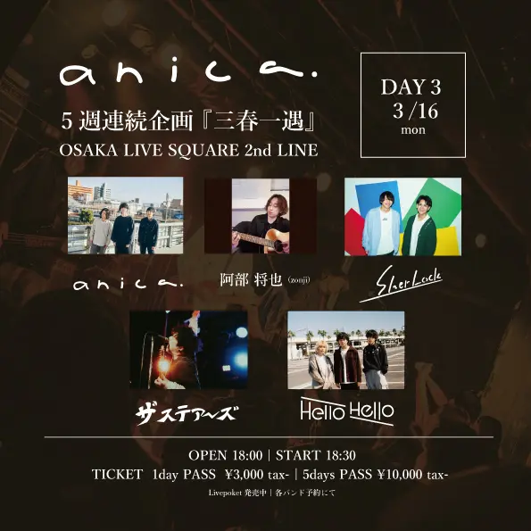 出演者 anica / SherLock / ザ ステアーズ / Hello Hello / 阿部将也(zonji)