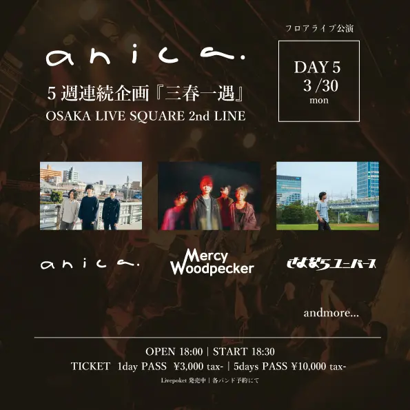 出演者 anica / Mercy Woodpecker / さよならユニバース