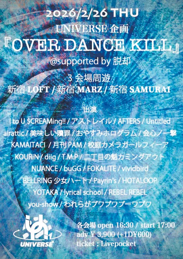 UNIVERSE企画『OVER DANCE KILL』 @supported by 脱却