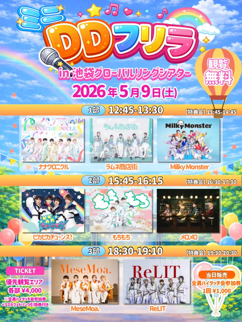 出演者 MeseMoa. / ReLIT / ナナクロニクル / ラムネ商店街 / Milky Monster / ピカピカチューンズ! / もちもち / メロメロ