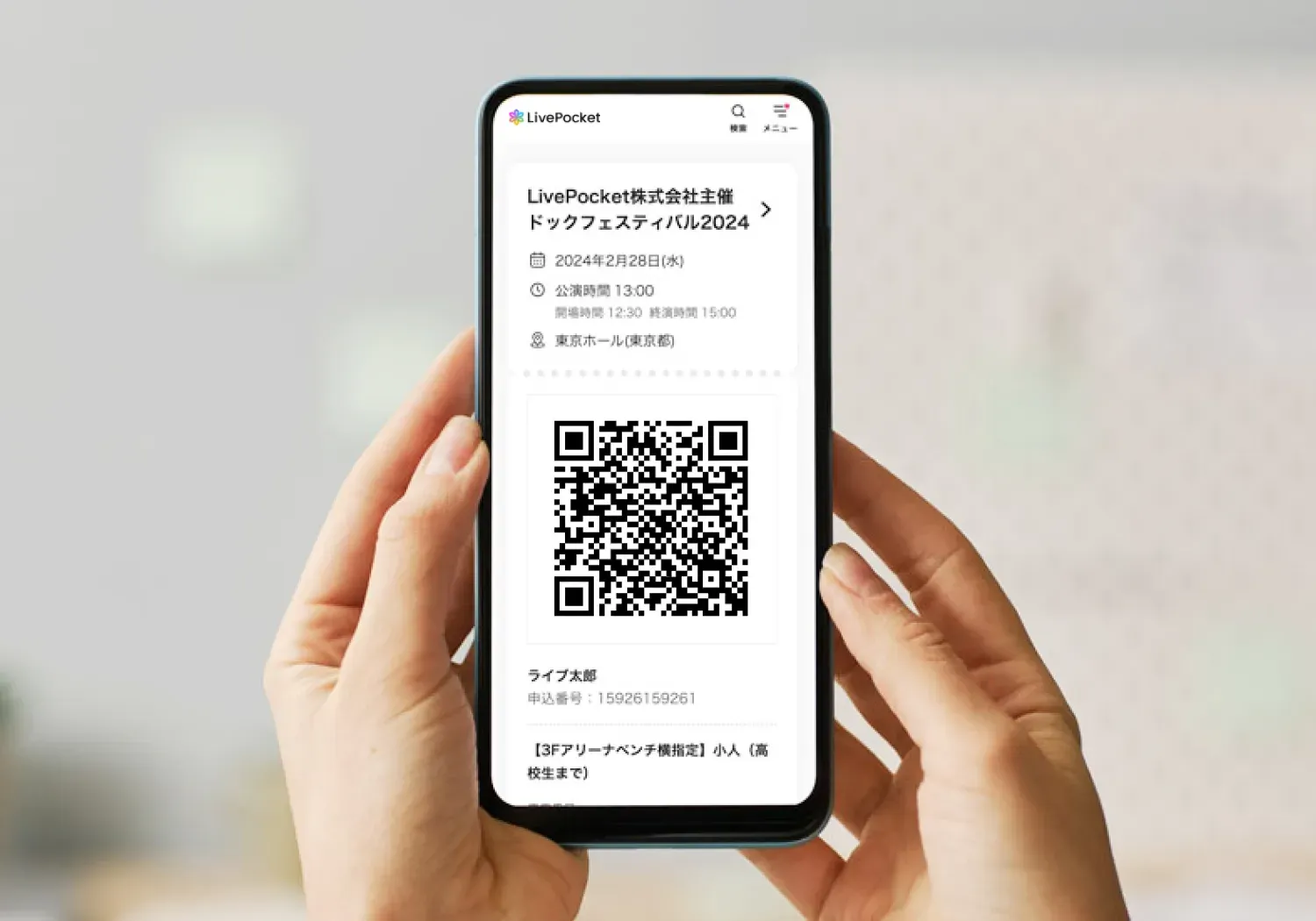 電子チケット、と聞くと入場時にQRコードをスキャンするための機材や専門業者を用意しなければならないと思ったのですが、LivePocketの電子チケットは、読み取り専用の機材は一切不要で、無料の専用アプリを自分たちのスマホにインストールするだけでQRコードの認証機に。自分たちのスマホでお客様がスマホに表示したチケットのQRコードをスキャンするだけなので、とても簡単で、スムーズで非接触の入場受付ができました。