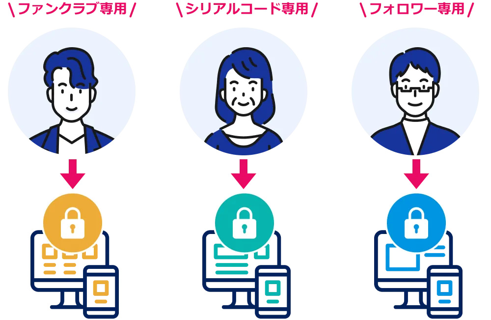特定のユーザーだけアクセスできる受付にしたい(専用販売ページ設定) ファンクラブ会員限定販売をしたい シリアルコード限定販売をしたい