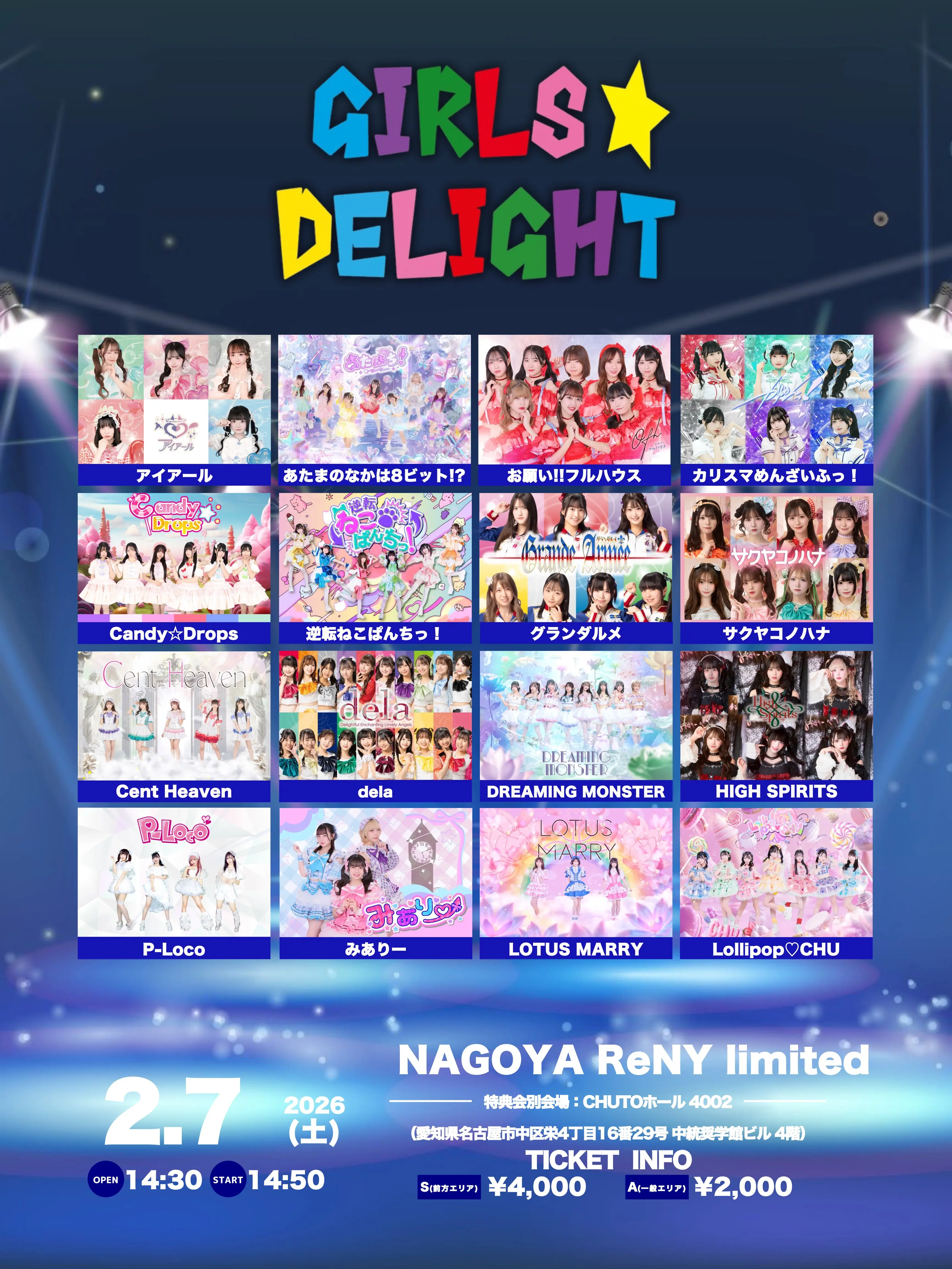 出演者 カリスマめんざいふっ! / サクヤコノハナ / Cent Heaven / DREAMING MONSTER / HIGH SPIRITS / LOTUS MARRY / アイアール / あたまのなかは8ビット⁉ / お願い!!フルハウス / Candy☆Drops / 逆転ねこぱんちっ! / グランダルメ / dela / P-Loco / みありー / Lollipop♡CHU