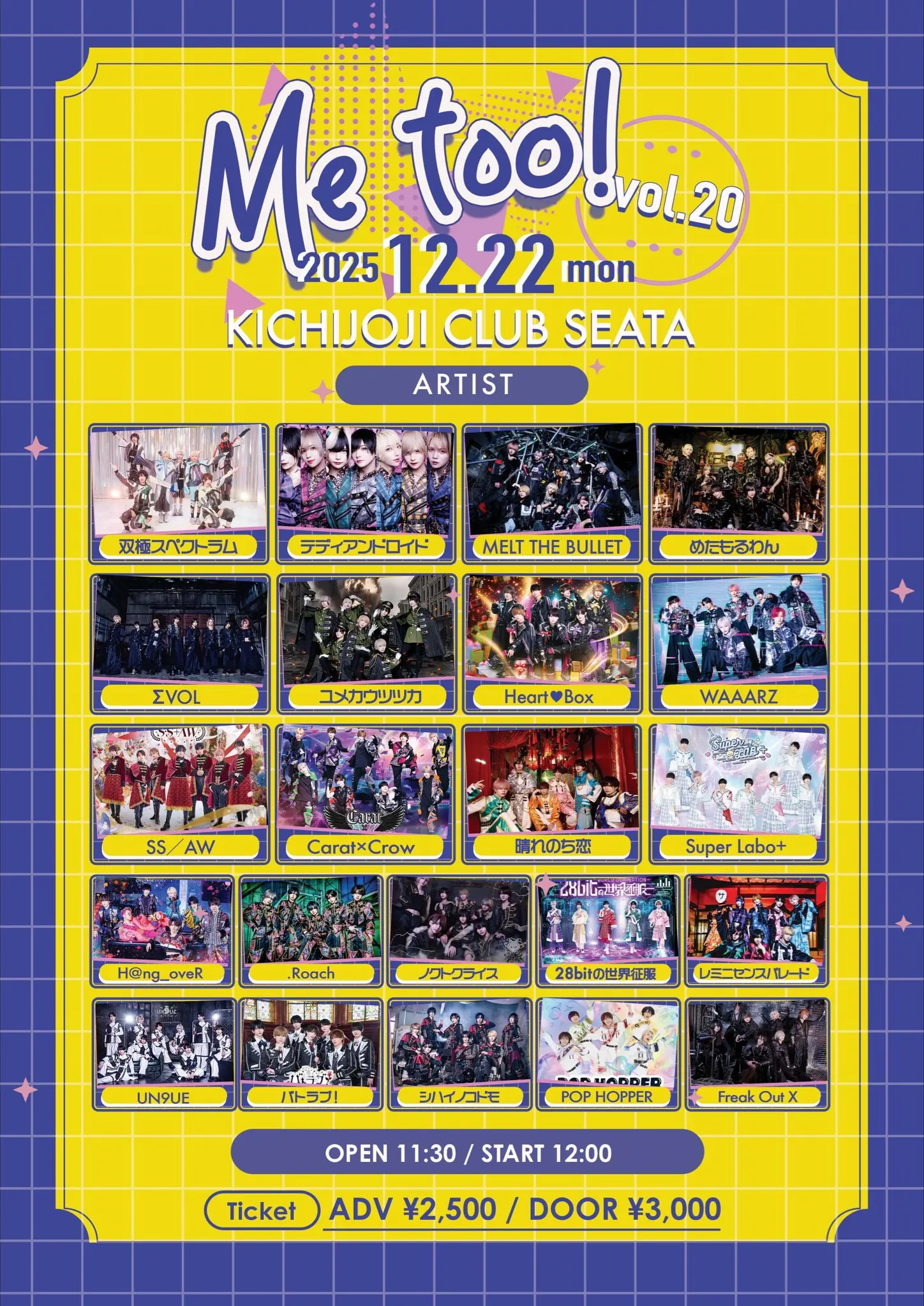 出演者 双極スペクトラム / テディアンドロイド / MELT THE BULLET / めたもるわん / ΣVOL / ユメカウツツカ / Heart♥Box / WAAARZ / SS/AW / Carat×Crow / 晴れのち恋 / Super Labo+ / ノクトクライス / 28bitの世界征服 / レミニセンスパレード / H@ng_oveR / .Roach / UN9NE / バトラブ! / シハイノコドモ / POP HOPPER / Freak Out X