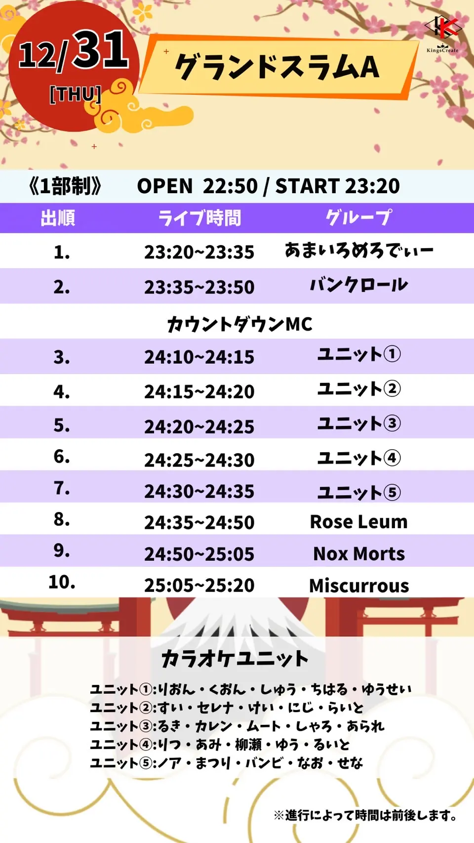 出演者 Miscurrous / RoseLeum / バンクロール / NoxMorts / あまいろめろでぃー