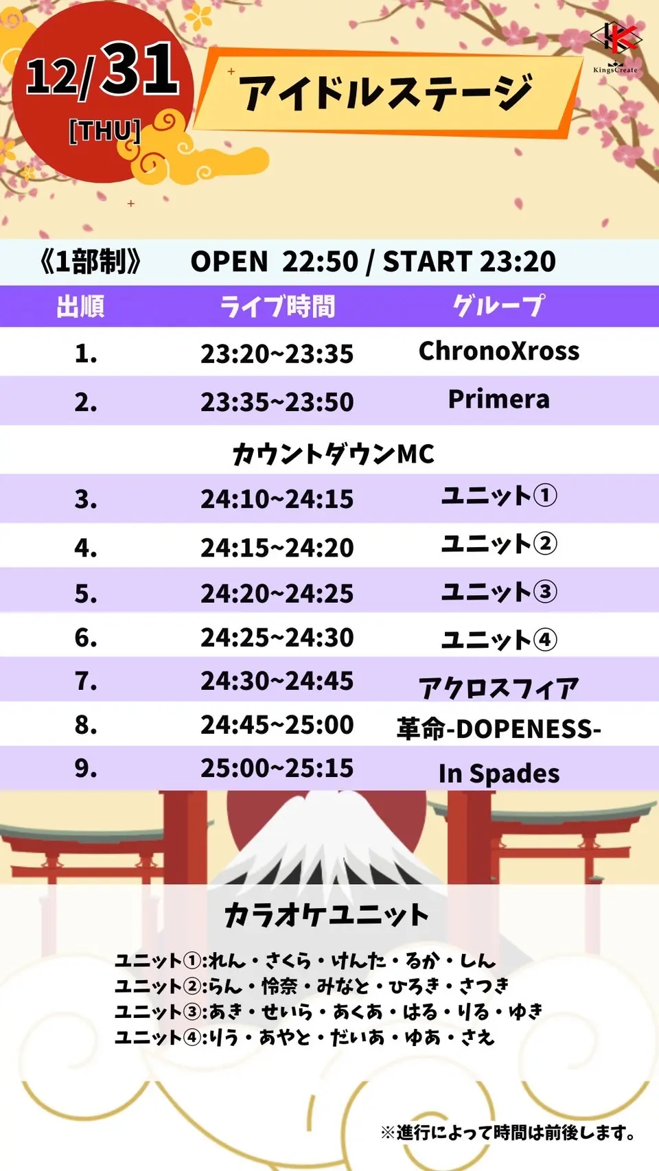 出演者 In Spades / Primera / 革命-DOPENESS- / ChronoXross / アクロスフィア