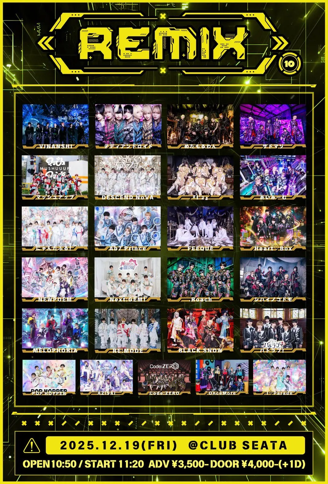 出演者 OnceMore / MELOPHORiA / バトラブ! / BLACK SNOW / Heart♥BOX / Ab7 prince / .Roach / I⭐︎Parade / Code:ZERO / AZiSAi / RE:MODE / シハイノコドモ / Next:GEM! / NEWPOEM / FEEQUE / にゃんだふる! / あいみーむ / 『I'z』 / DESCEND NoVA / マッシュアップ / ザドマゾ / めたもるわん / テディアンドロイド / VINANSHI