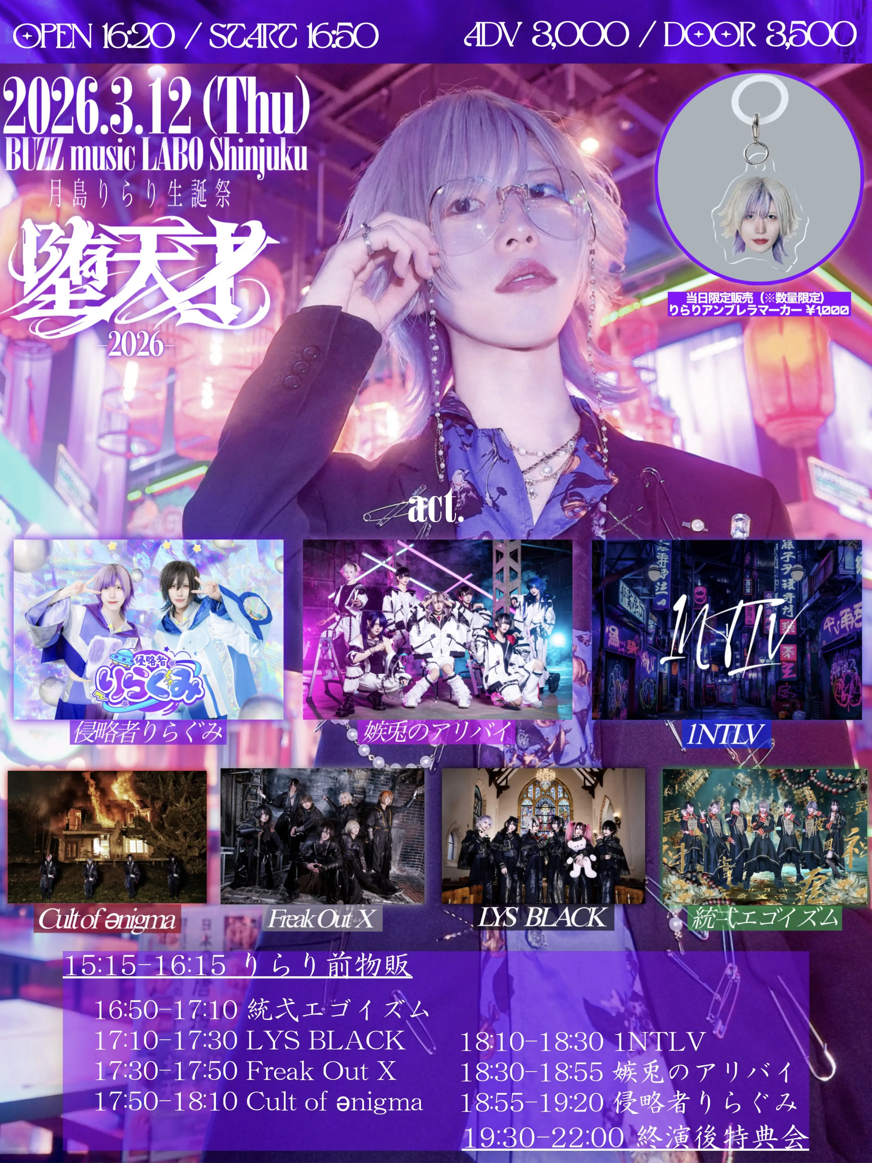 出演者 侵略者りらぐみ / 嫉兎のアリバイ / LYS BLACK / Freak Out X / 1NTLV / Cult of ǝnigma / 統弌エゴイズム