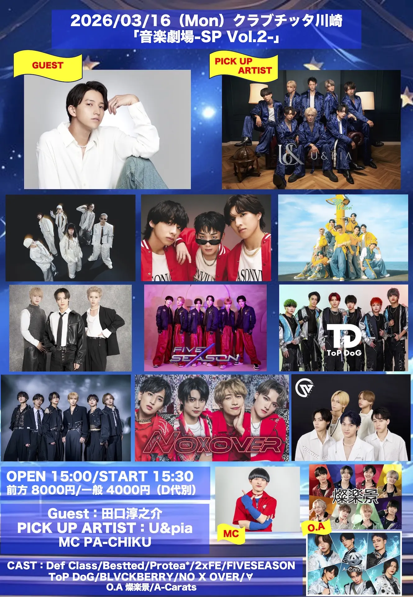 出演者 田口淳之介 / U&pia / Def Class / Bestted / Protea* / 2xFE / FIVESEASON / BLVCKBERRY / NO X OVER / ∀ / ToP DoG / 燦楽景 / PA-CHIKU / A-Carats