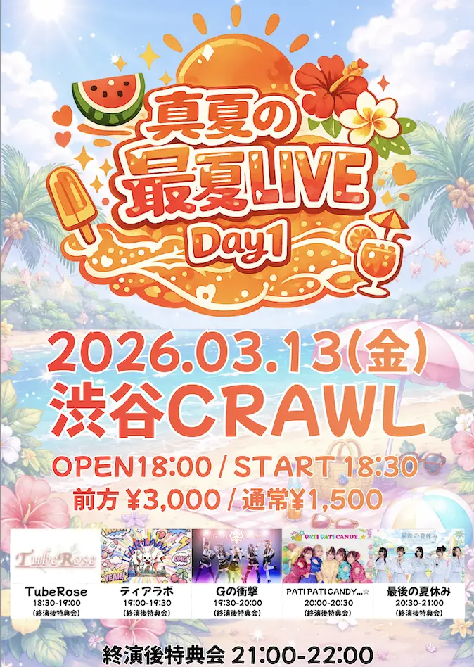 出演者 最後の夏休み / PATI PATI CANDY...☆ / ティアラボ / Gの衝撃 / TubeRose